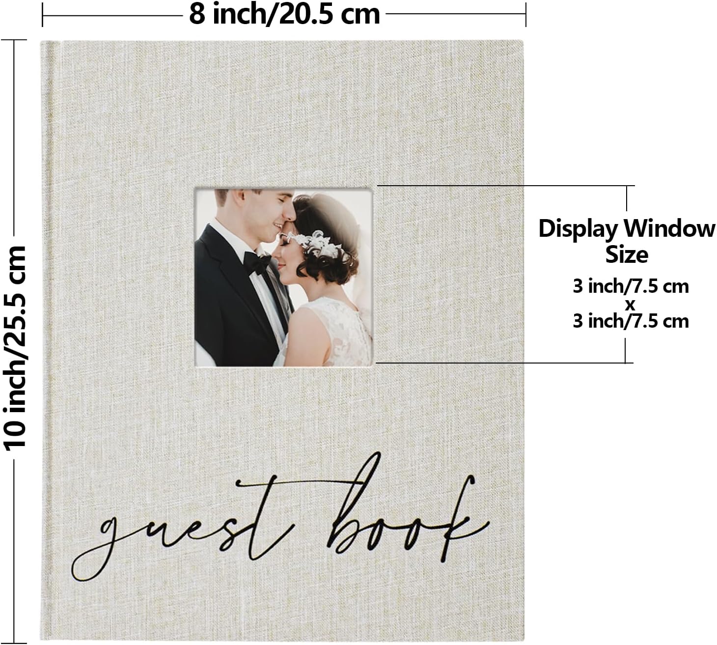 - Personalized Guest Book: The cover of the wedding guestbook is wrapped in linen, durable and sturdy, highlighting its elegance and sophistication. The cover comes with a 3x3 inch window where you can change your favorite photos to create a guestbook with your own unique style!