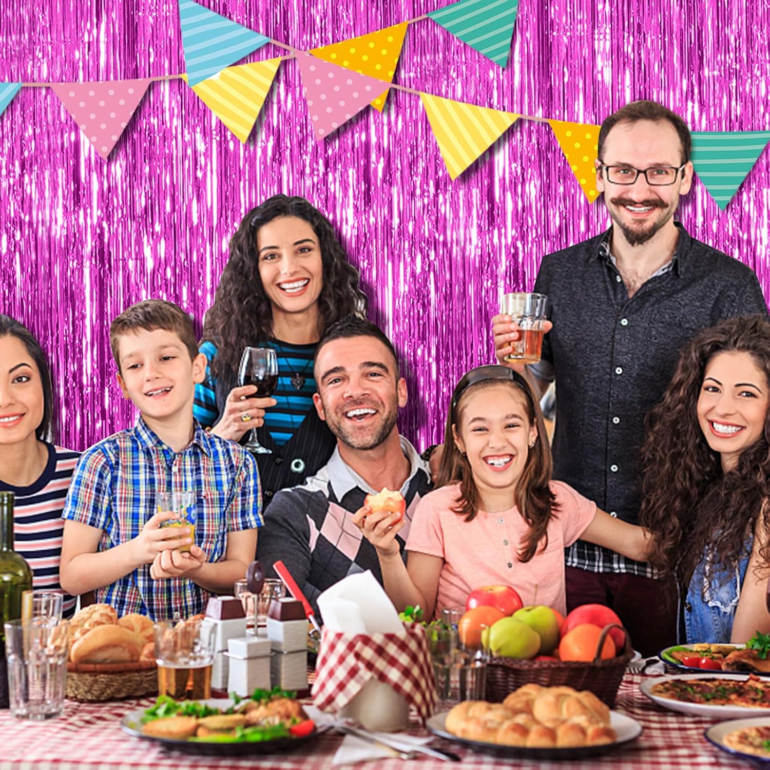 - Party Streamers Backdrop: 2Packs/Set, each pack curtains size is 3.28 ft x 6.56 ft, enough length foil fringe backdrops are perfect for the door or wall to create an impressive decoration for parties, events, and photo booths. Create your own party decorations now!