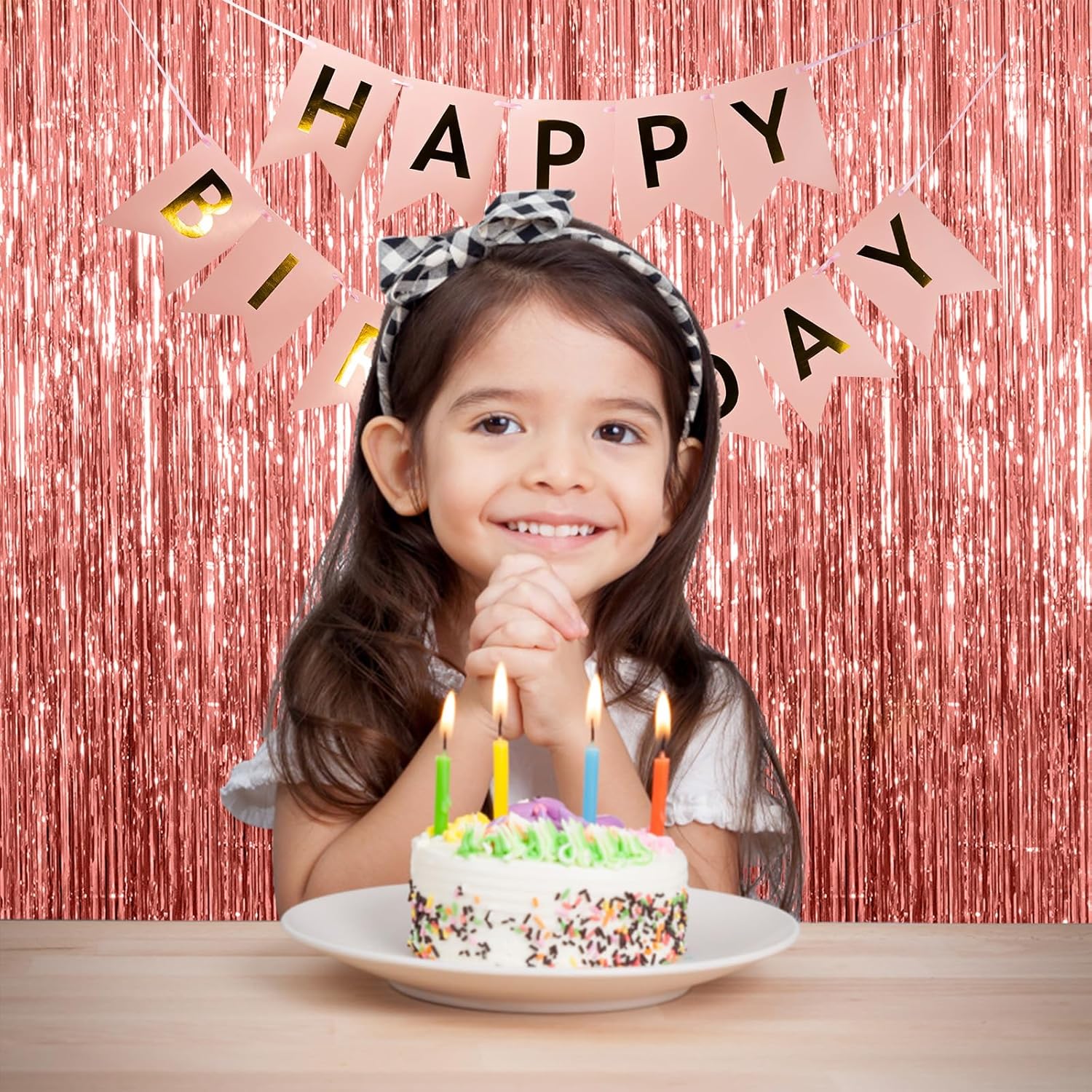 Rose Gold Party Decor 3 Pack - Bachelorette & Birthday Backdrop - Foil Fringe Tinsel Streamers - Christmas, Graduation & Baby Shower Party Decorations
