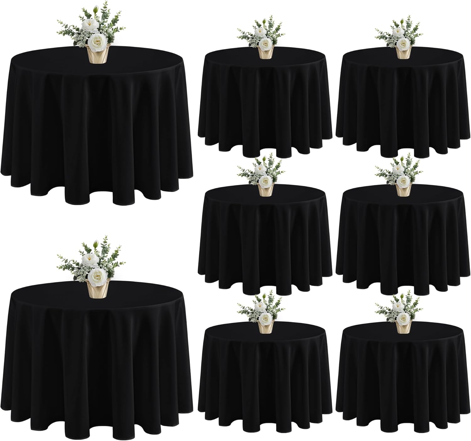 Fitable 8 Pack Black Table Cloths 120 Inch Round - Stain Resistant and Washable Tableclothes, Polyester Fabric Table Covers for Wedding, Party, Banquet, Formal Events