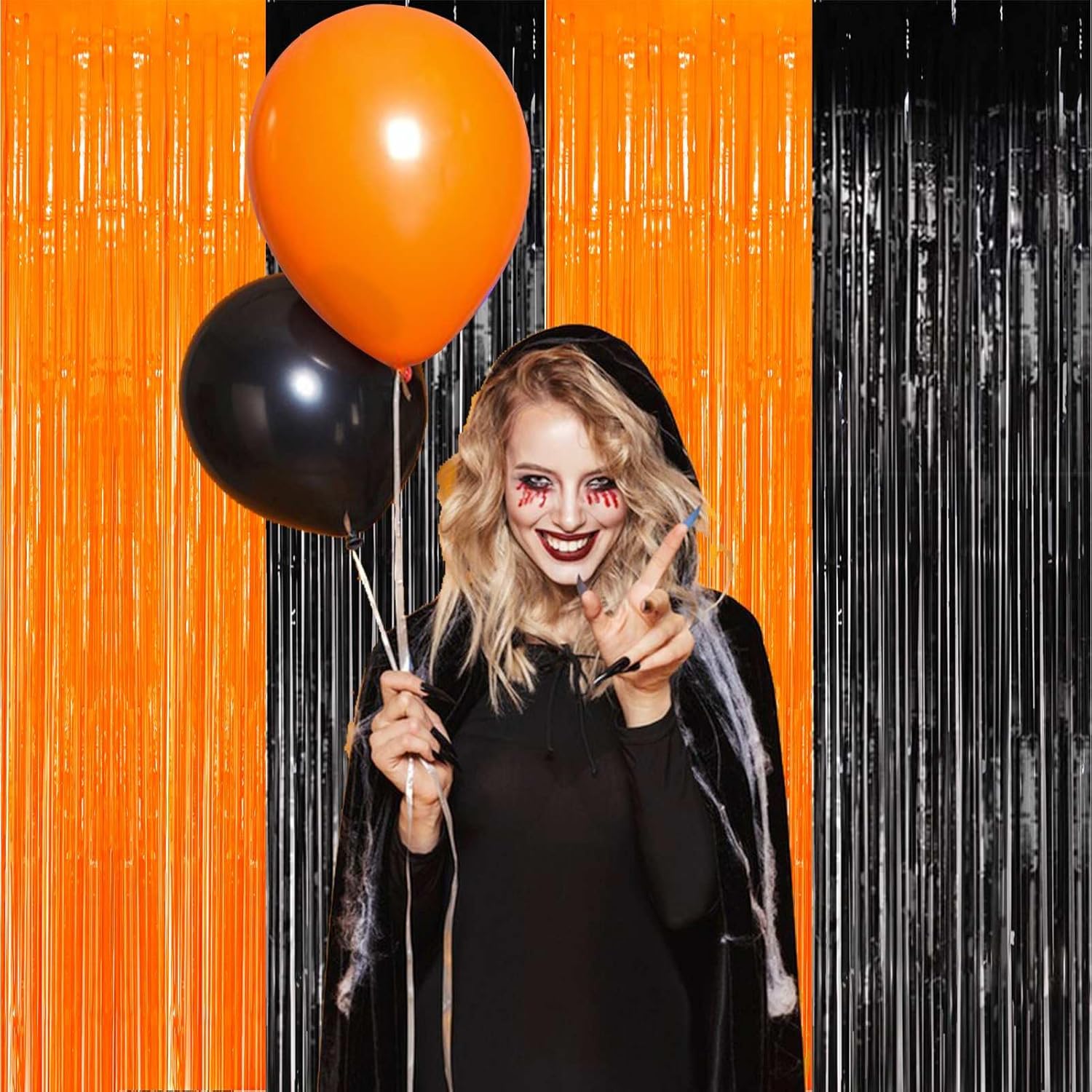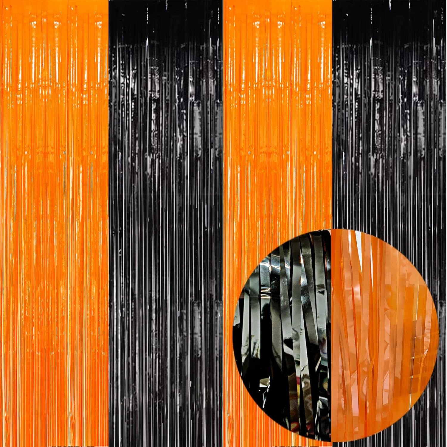 - CLASSIC HALLOWEEN DECOR: The party backdrop curtains features two iconic colors: orange and black. these colors are synonymous with Halloween and are essential for creating a spooky atmosphere at your Halloween. get ready to transform your space into a frightfully fun Halloween scene with these classic orange and black foil fringe curtains.