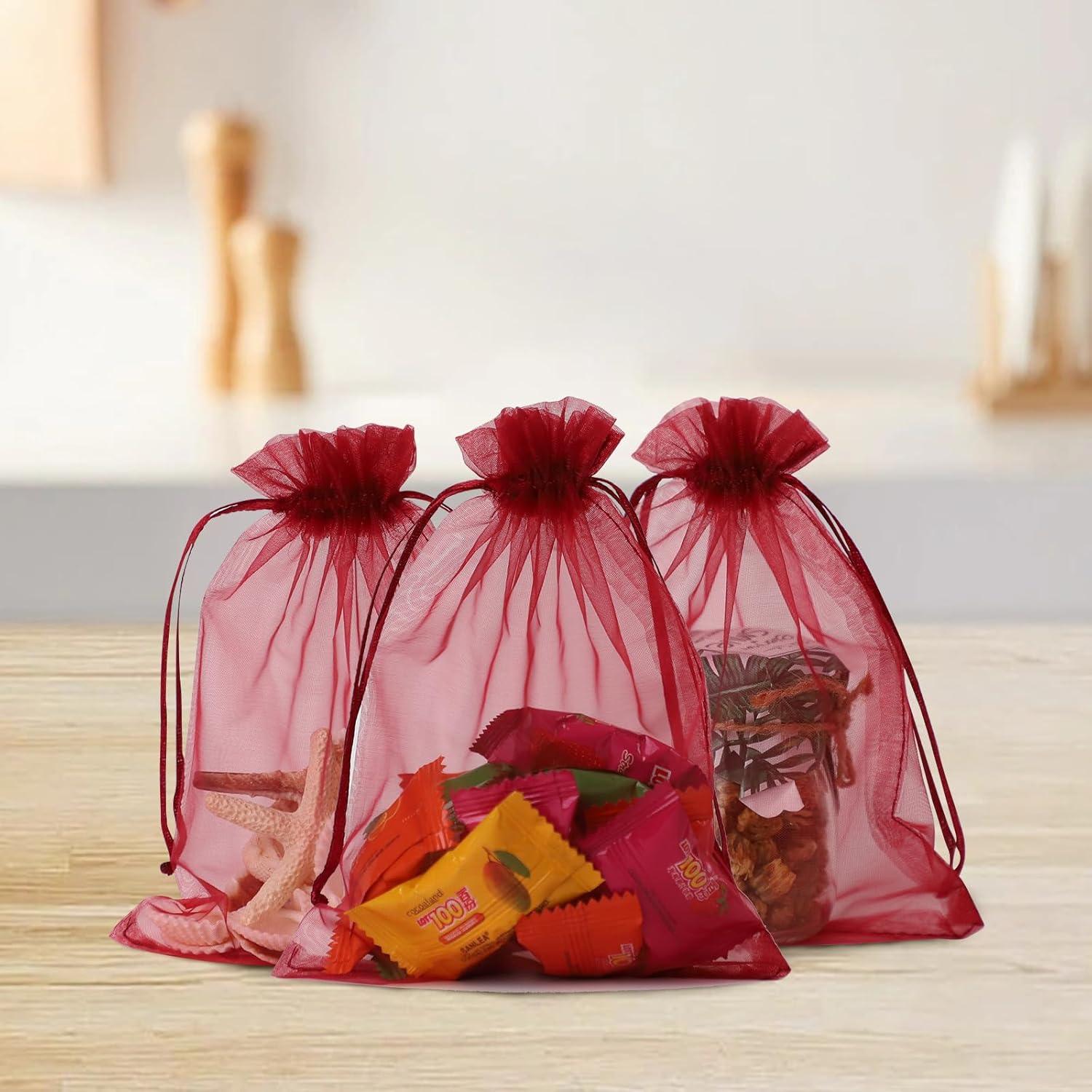 Wudygirl 100 PCS Organza Bags - 5X7 Inch Sheer Organza Bags with Drawstring for Jewelry, Wedding Favor, Candy (Wine Red 5X7)