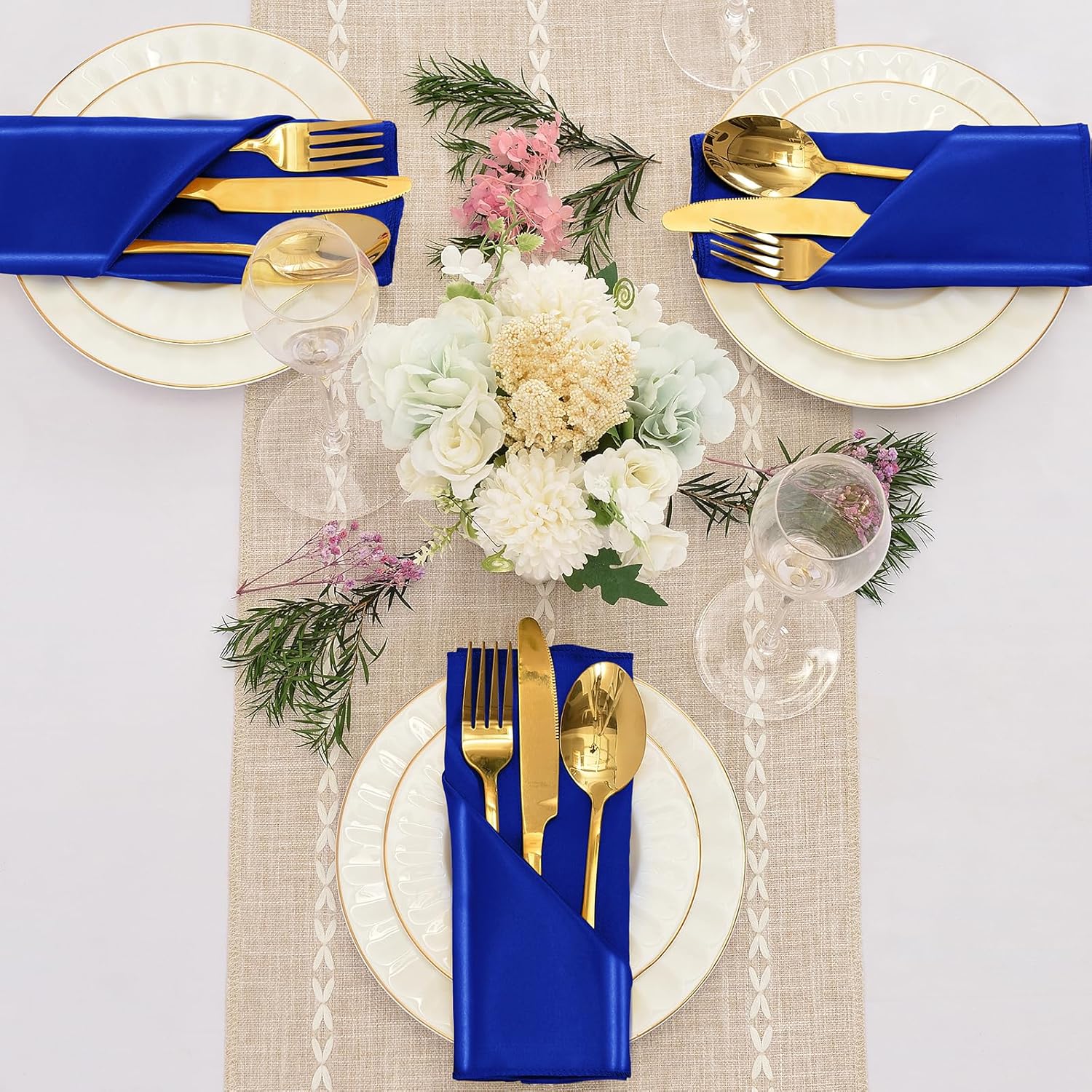 50 Pieces Royal Blue Satin Napkins, 17" x 17" Square Table Napkins, Silky Soft Smooth Washable Napkins for Restaurant, Weddings, Dinner, Party Decoration