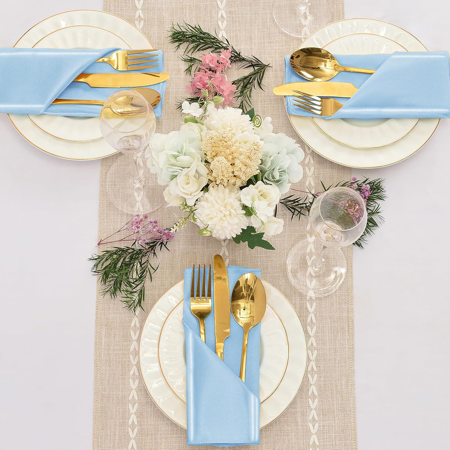 50 Pieces Light Blue Satin Napkins, 17" x 17" Square Table Napkins, Silky Soft Smooth Washable Napkins for Restaurant, Weddings, Dinner, Party Decoration