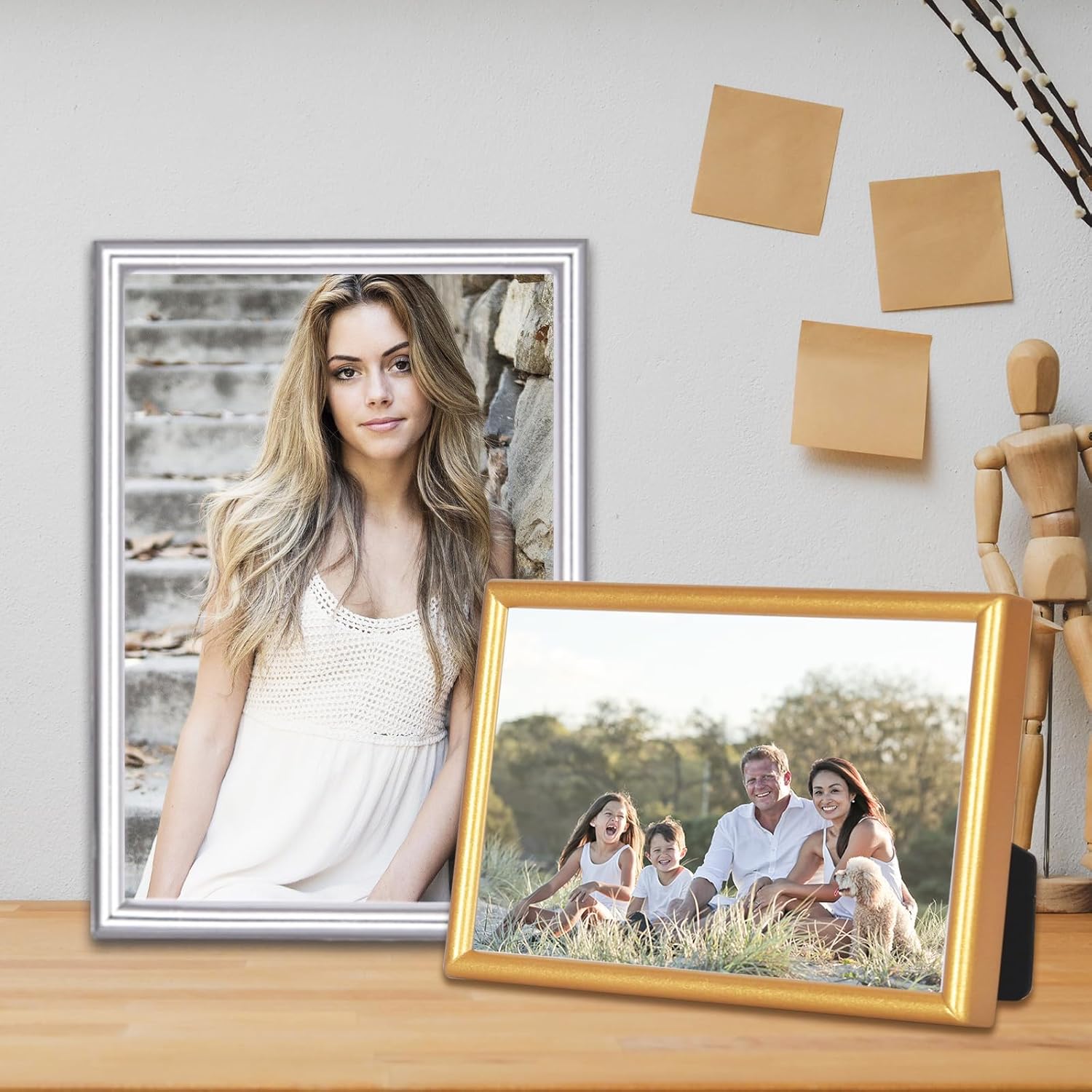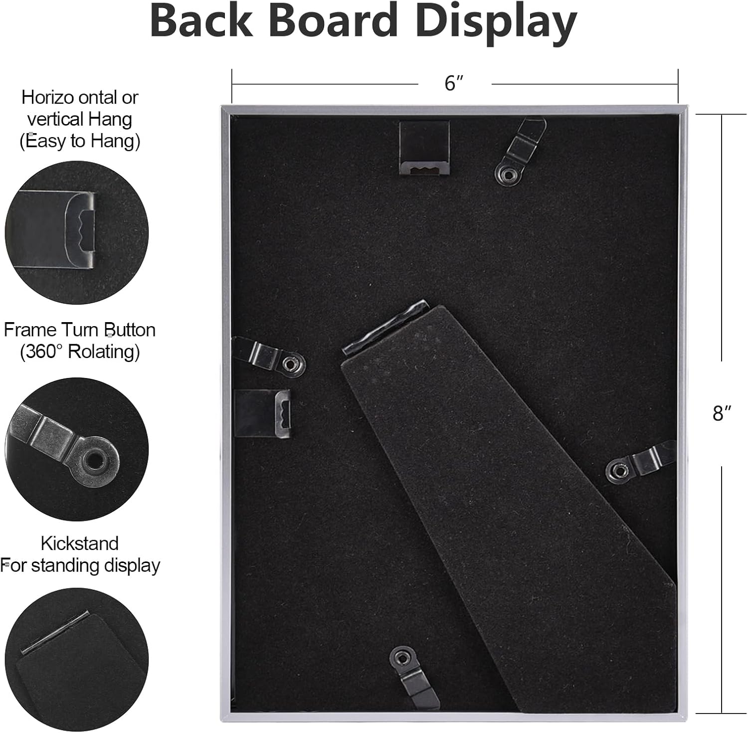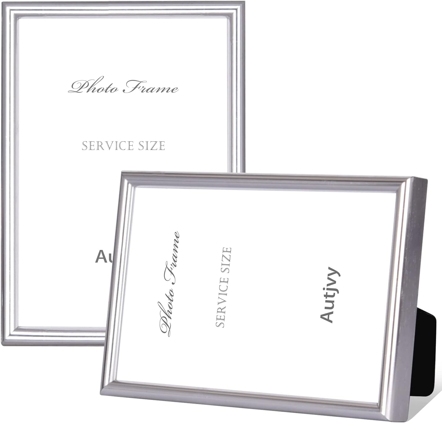 6x8 Picture Frame set of 2 Matte Silver Modern Simple Thin Aluminum Metal Photo Frame with HD Real Glass, Display for Tabletop and Wall Collage. (2 Pack)