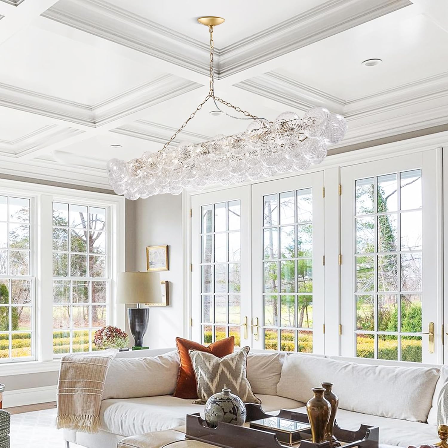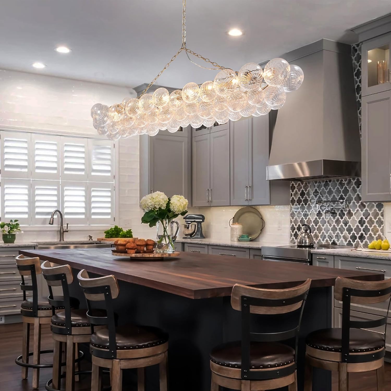 Nordic Bubble Ball Swirled Glass Chandelier, 62 inch Long Rectangular Chandeliers Island Light Fixture for Dining Table Living Room