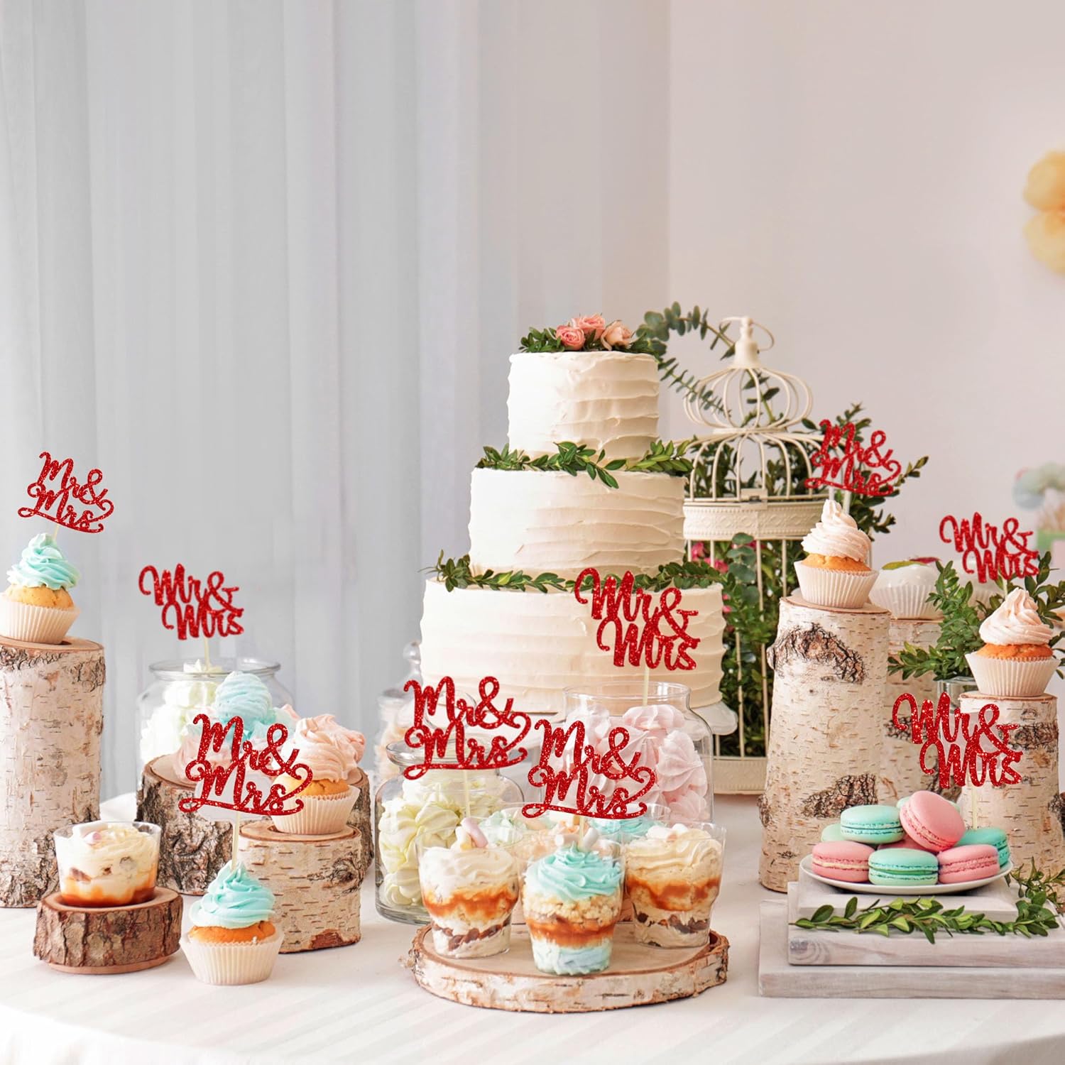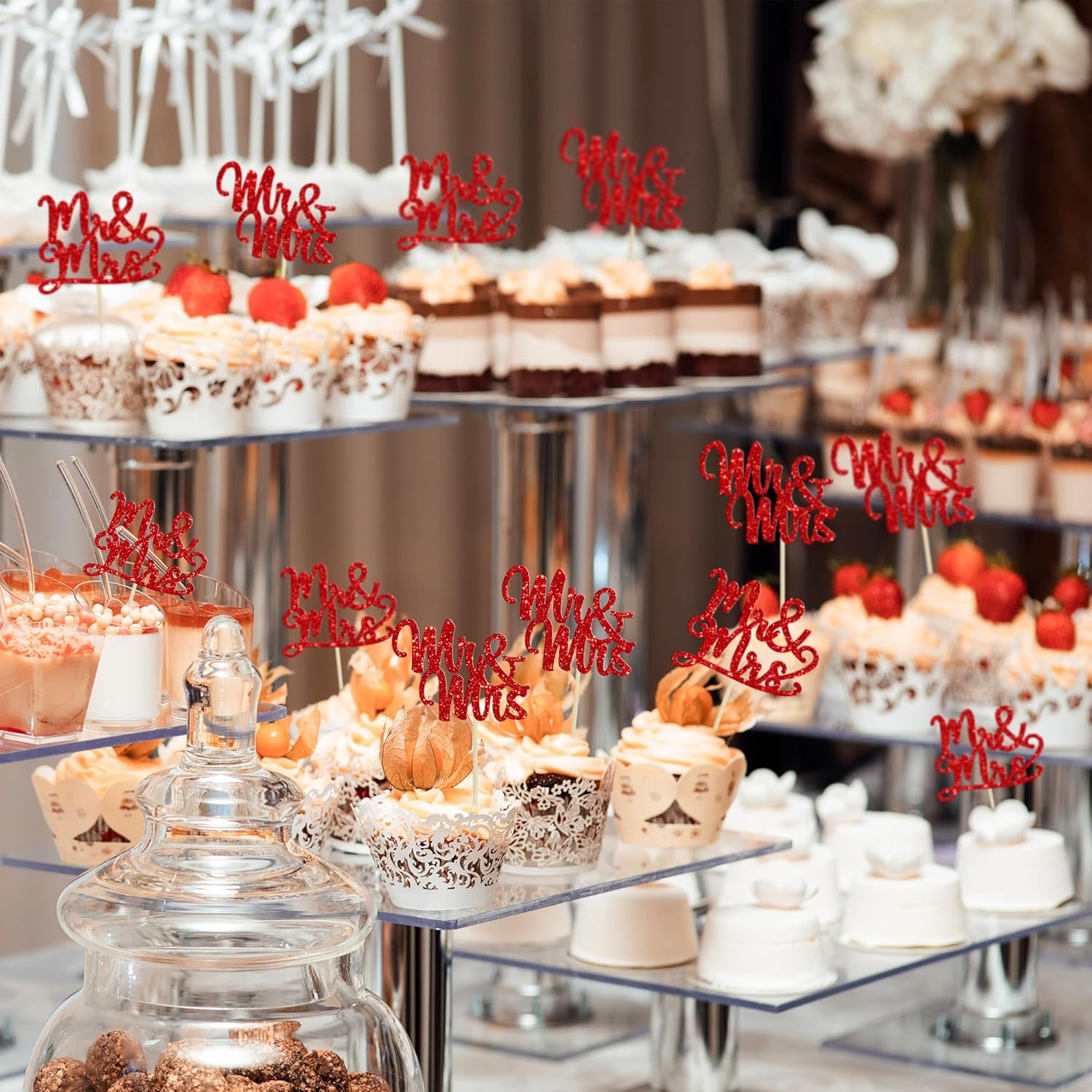 - 🧡🧡Mr Mrs Cupcake Toppers are so cute and good for bridal shower theme party, wedding engagement theme party, birthday party cupcake decorations. They can make your cupcake more attractive and bring the fun to your party. You can also apply them for ice cream, fruits, cookies and other desserts.