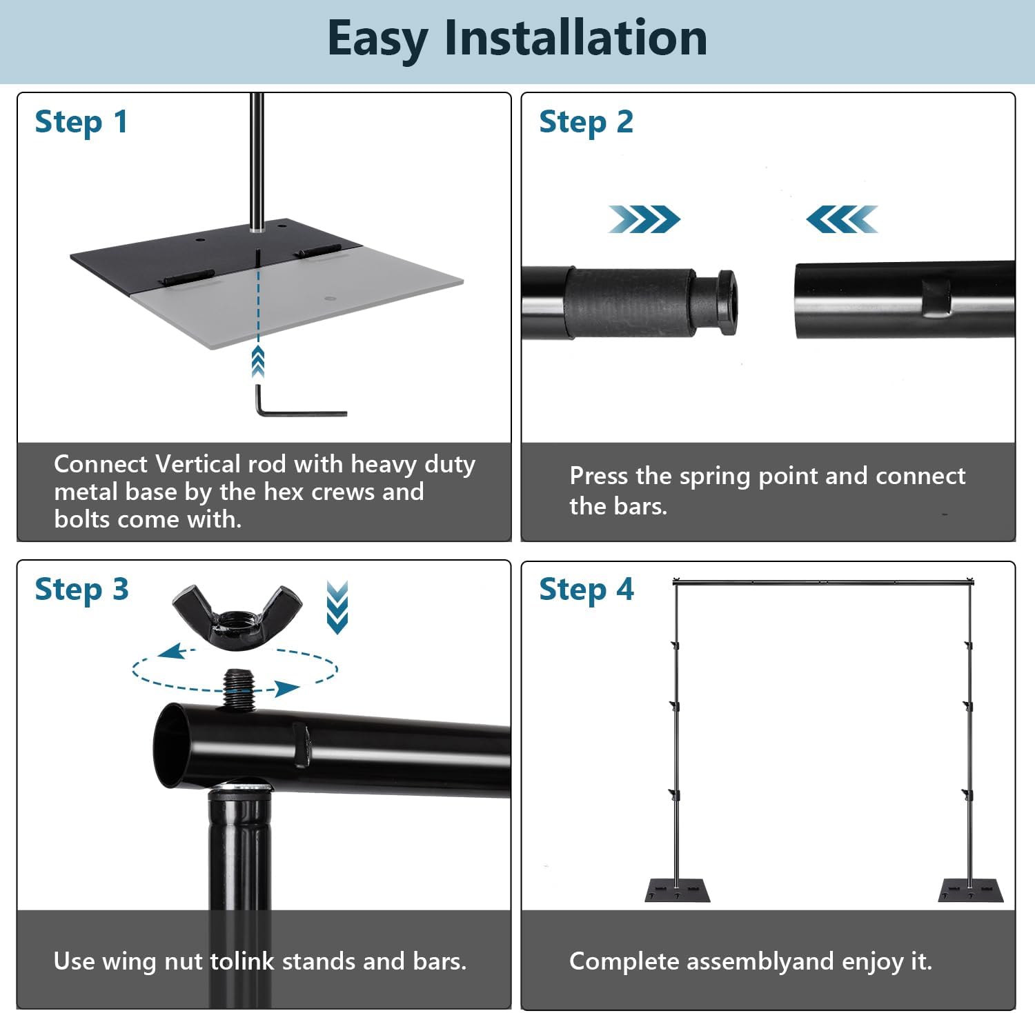 - Pipe and drape backdrop kit This one can hang curtains, balloons, string lights, flower walls and grass walls and other decorations. Use for family gatherings, baby shower,business events,weddings and professional photography or parties.