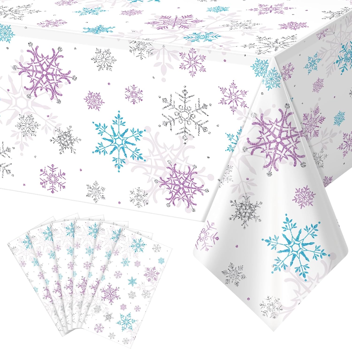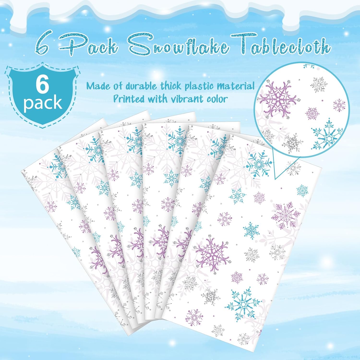 6 Pieces Christmas Snowflake Party Tablecloth Decorations,Plastic Purple and Blue Winter Wonderland Table Cover for Winter Christmas Birthday Holiday Party Decorations and Supplies,54x108 inch