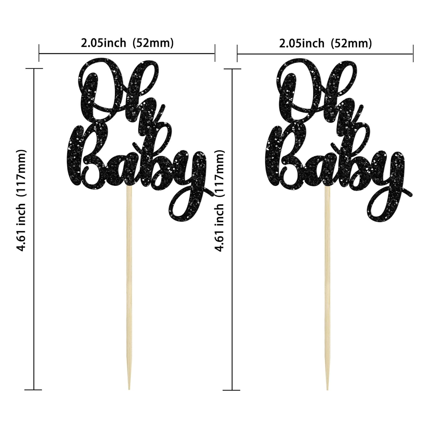 Gyufise 36Pcs Oh Baby Cupcake Toppers Glitter Baby Shower Cupcake Picks Oh Baby Cake Decorations for Gender Reveal Baby Shower Kids Boys Girls Birthday Party Supplies Black