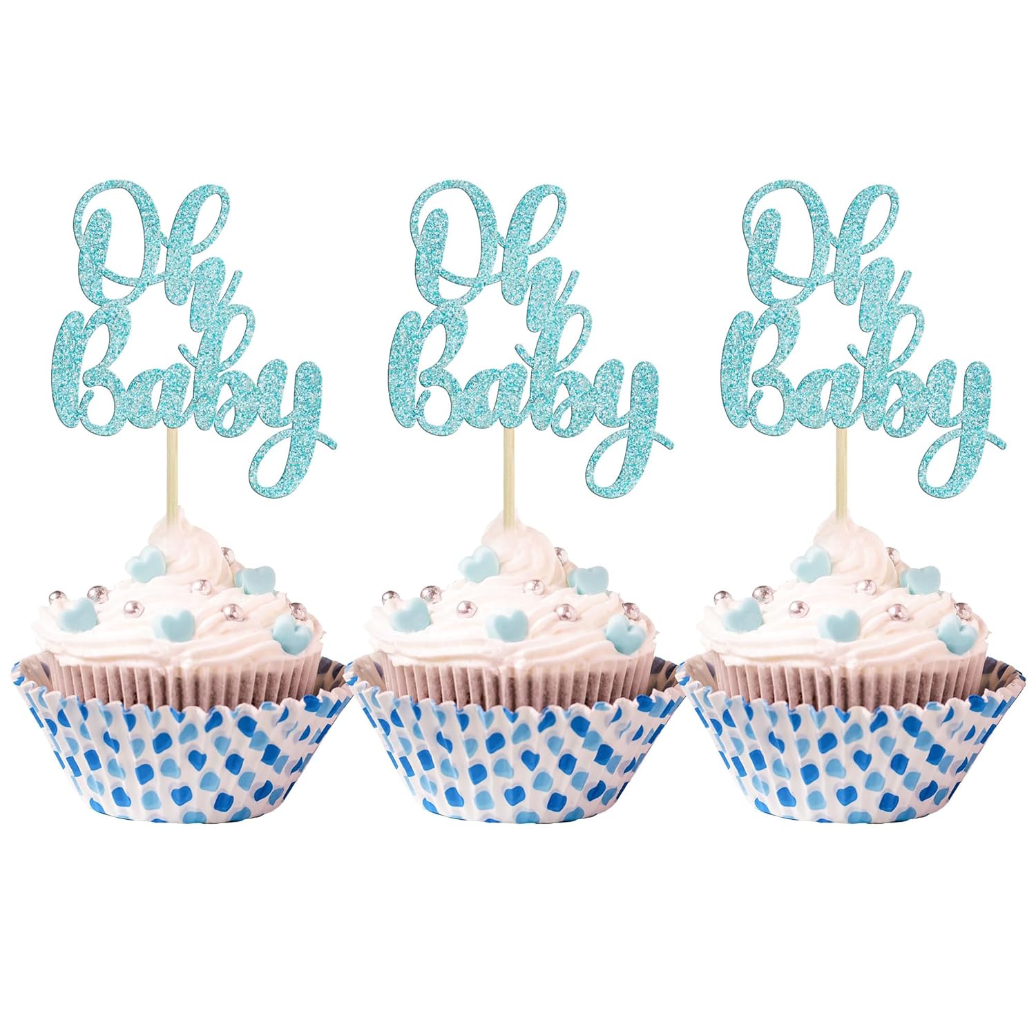 Gyufise 36Pcs Oh Baby Cupcake Toppers Glitter Baby Shower Cupcake Picks Oh Baby Cake Pick for Baby Shower Kids Boys Girls Birthday Party Cake Decorations Supplies Light Blue