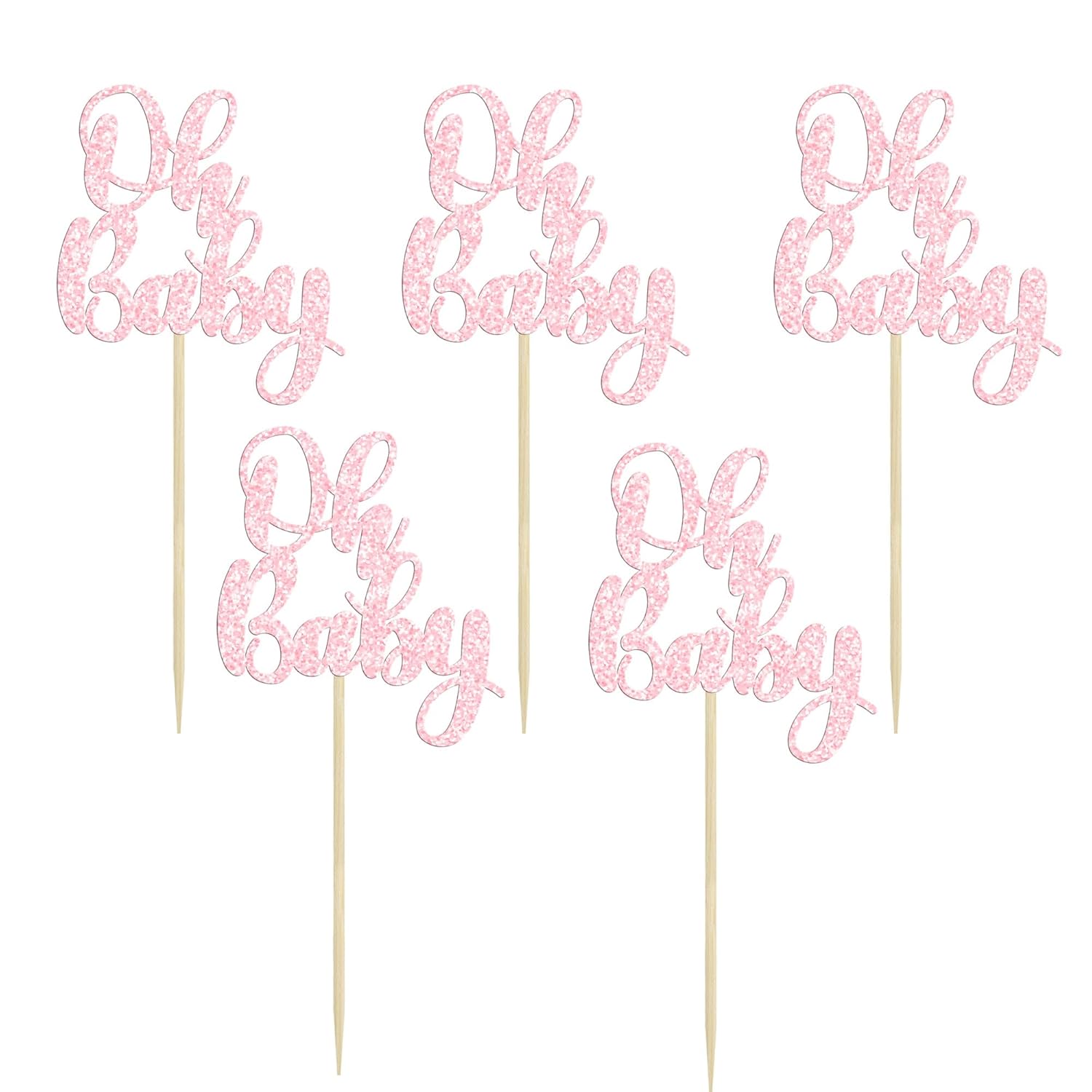 Gyufise 36Pcs Oh Baby Cupcake Toppers Glitter Baby Shower Cupcake Picks for Gender Reveal Baby Shower Kids Boys Girls Birthday Party Cake Decorations Supplies Light Pink
