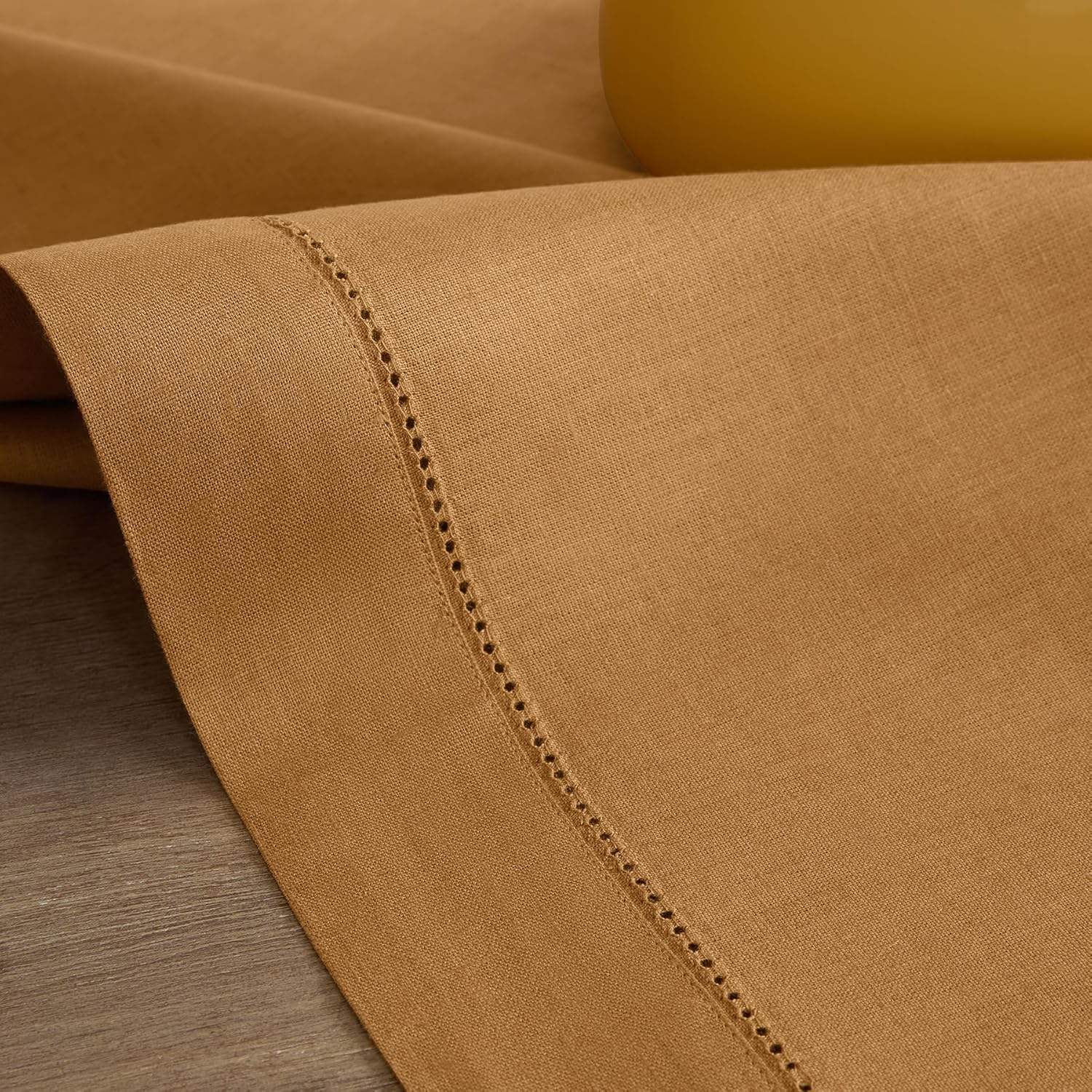 Solino Home Brown Sugar Linen Tablecloth 60 x 90 Inch - Classic Hemstitch, 100% Pure Linen Rectangular Tablecloth - Machine Washable Table Cloth for Fall, Autumn, Thanksgiving