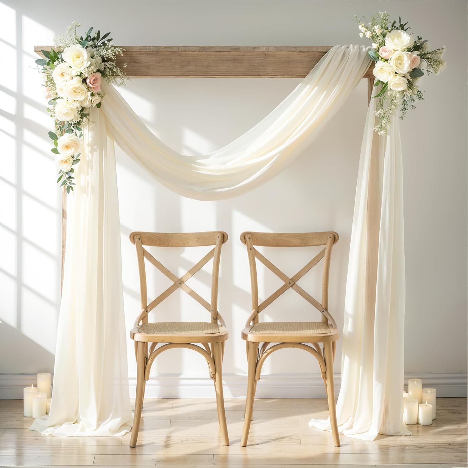 Wedding Arch Draping Fabric, 2 Panels 28" x 19Ft Ivory Wedding Arch Drapes Sheer Backdrop Curtain for Wedding Ceremony Party Ceiling Decor