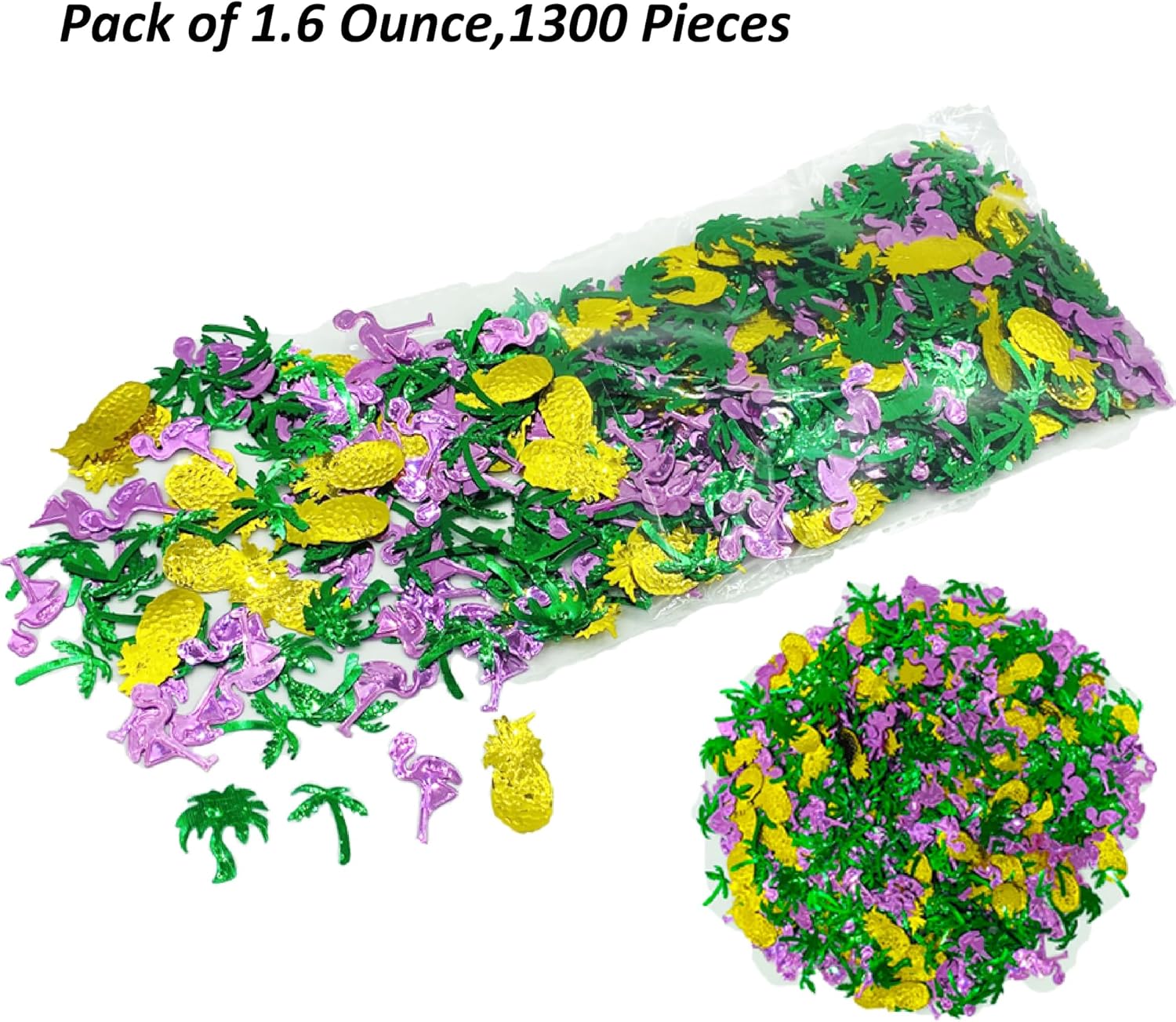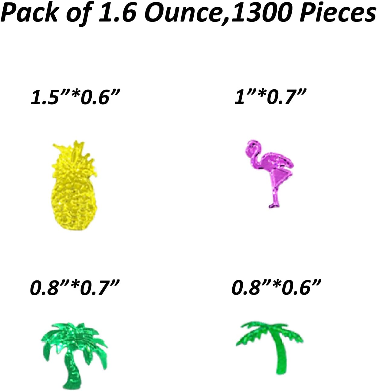 - QUANTITY SUFFICIENT:Each confetti approximate 1.5"*0.6";1"*0.7";0.8"*0.7";0.8"*0.6";1.6 Ounce/Bag,approximate 1300 Pieces in total.It is enough to add this confetti to party tables and centerpiece decorations for an extra-festive touch and a bit of unexpected glam.