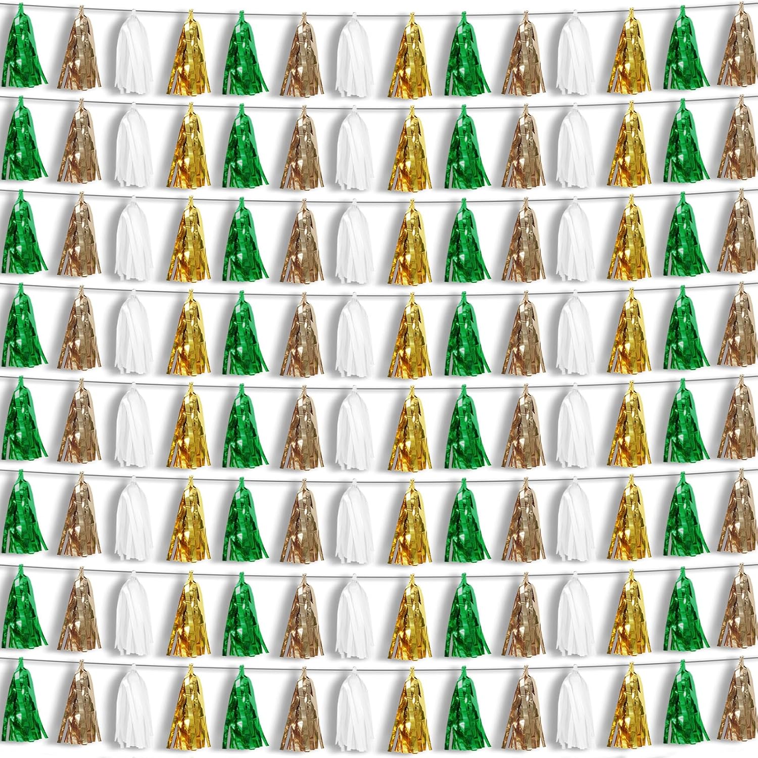 - 【Reusable Paper Material】: high-quality metallic foil tassel garlands, with the virtue of nice craftsmanship and lightweight, they are reusable and safe, and not easy to fade; They come with white ribbon for hanging, and garland tassels hang perpendicular to the string, and are adjustable to provide you with the option of spreading the tassels out or piecing them closer together.