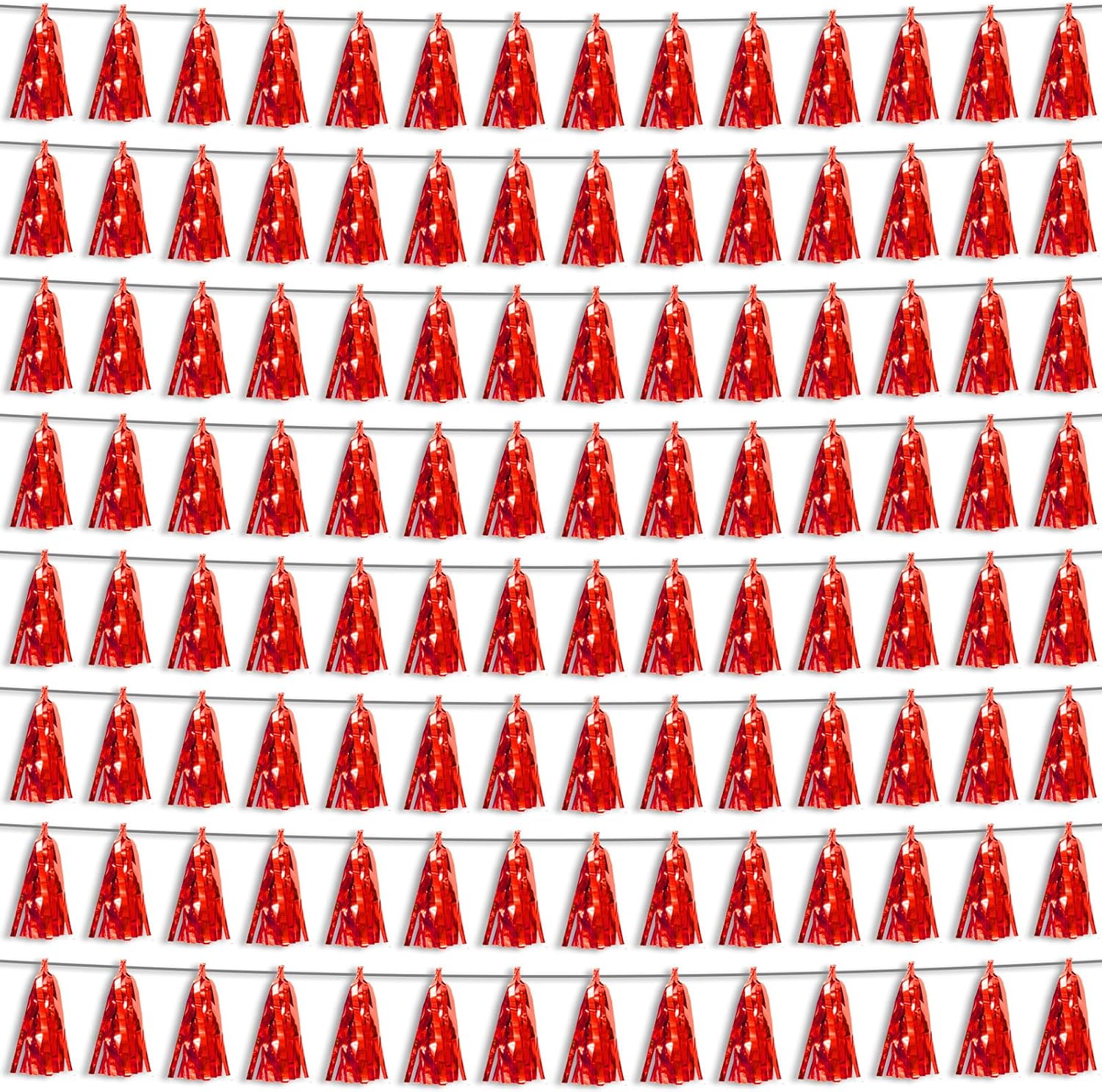 - 【Red Party Supplies Set】: The total length of the red birthday tassels banner is 78.7 feet 120tassels, divided into 8 strips, each 9.8 feet long. Each banner contains 15 tassels, and each tassel measures 14 inches, for birthday decorations many occasions, and so on