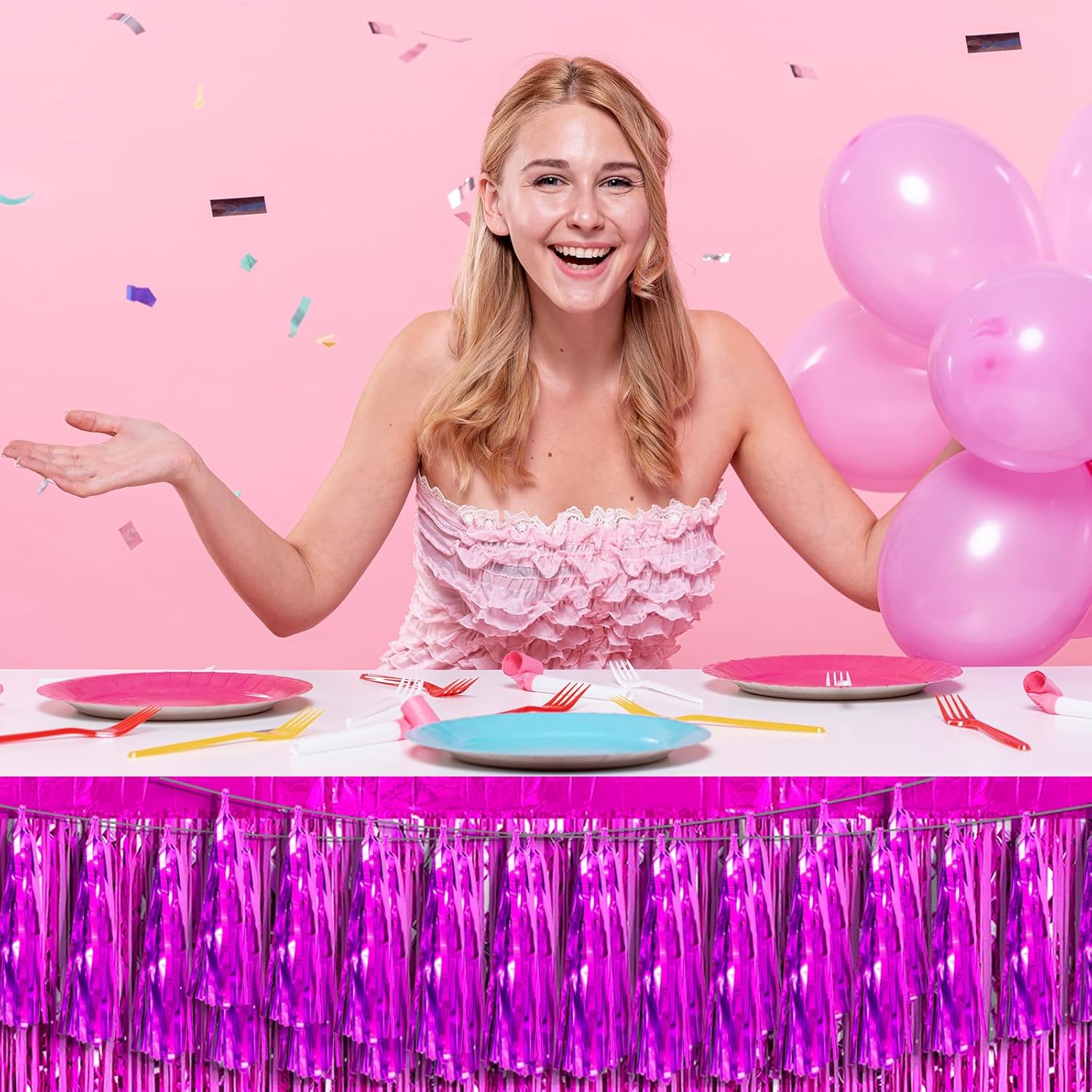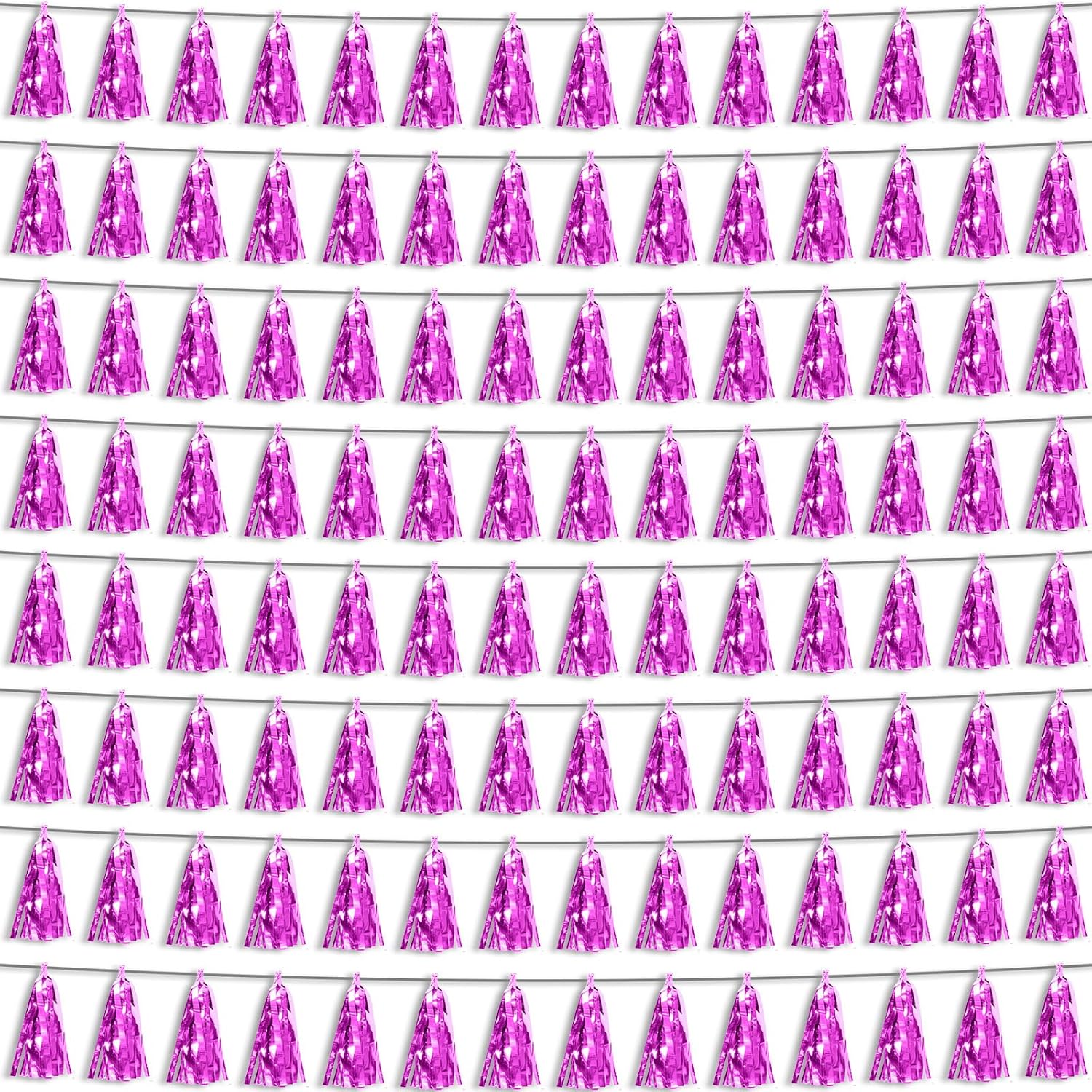 Hysilla Fuchsia Foil Fringe Metallic Tassel Streamers Banner Tassel Garland for Parade Floats, Bachelorette, Wedding, Birthday, Halloween, Christmas, Bridal/Baby Shower Party Decorations