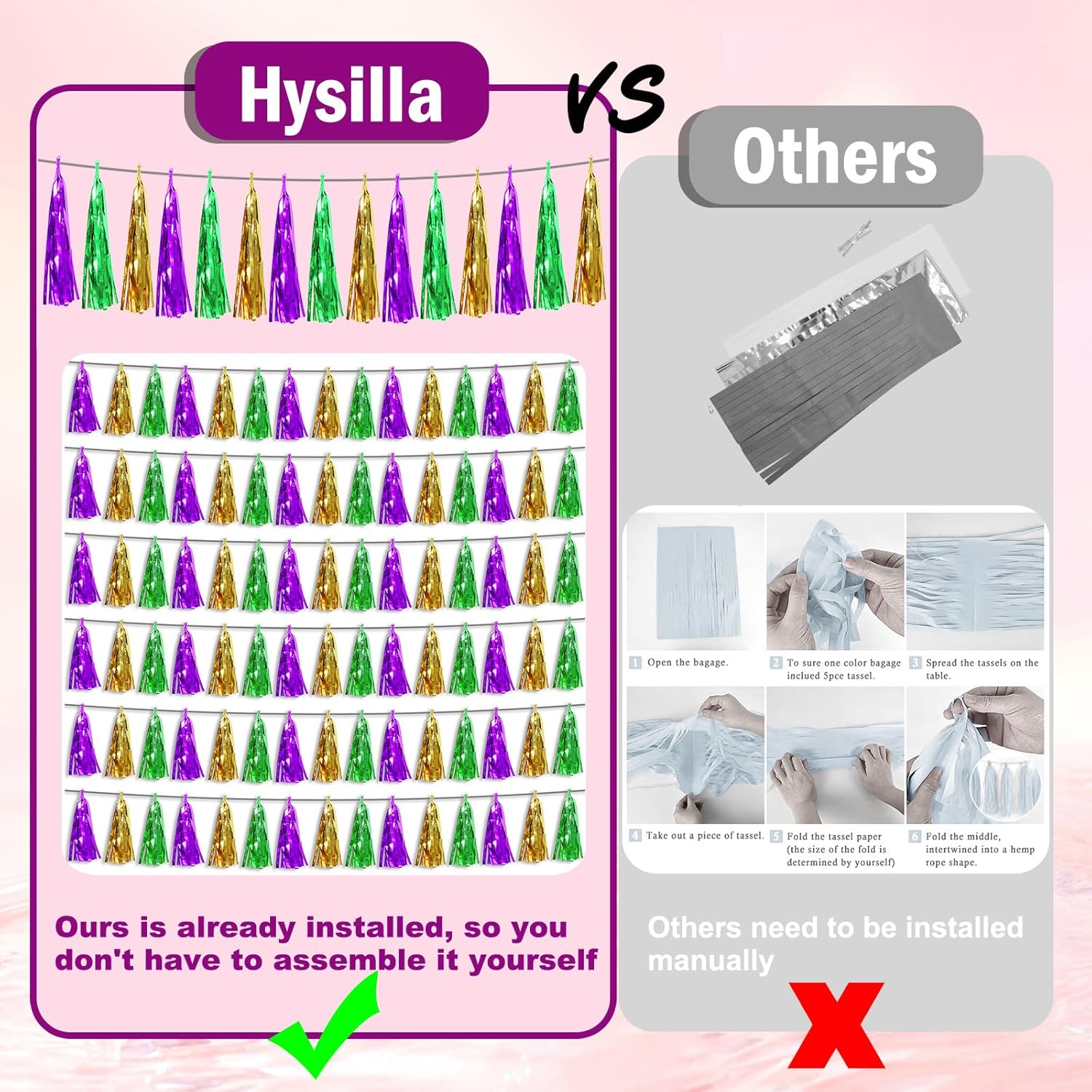 - 【Reusable Paper Material】: high-quality metallic foil tassel garlands, with the virtue of nice craftsmanship and lightweight, they are reusable and safe, and not easy to fade; They come with white ribbon for hanging, and garland tassels hang perpendicular to the string, and are adjustable to provide you with the option of spreading the tassels out or piecing them closer together.