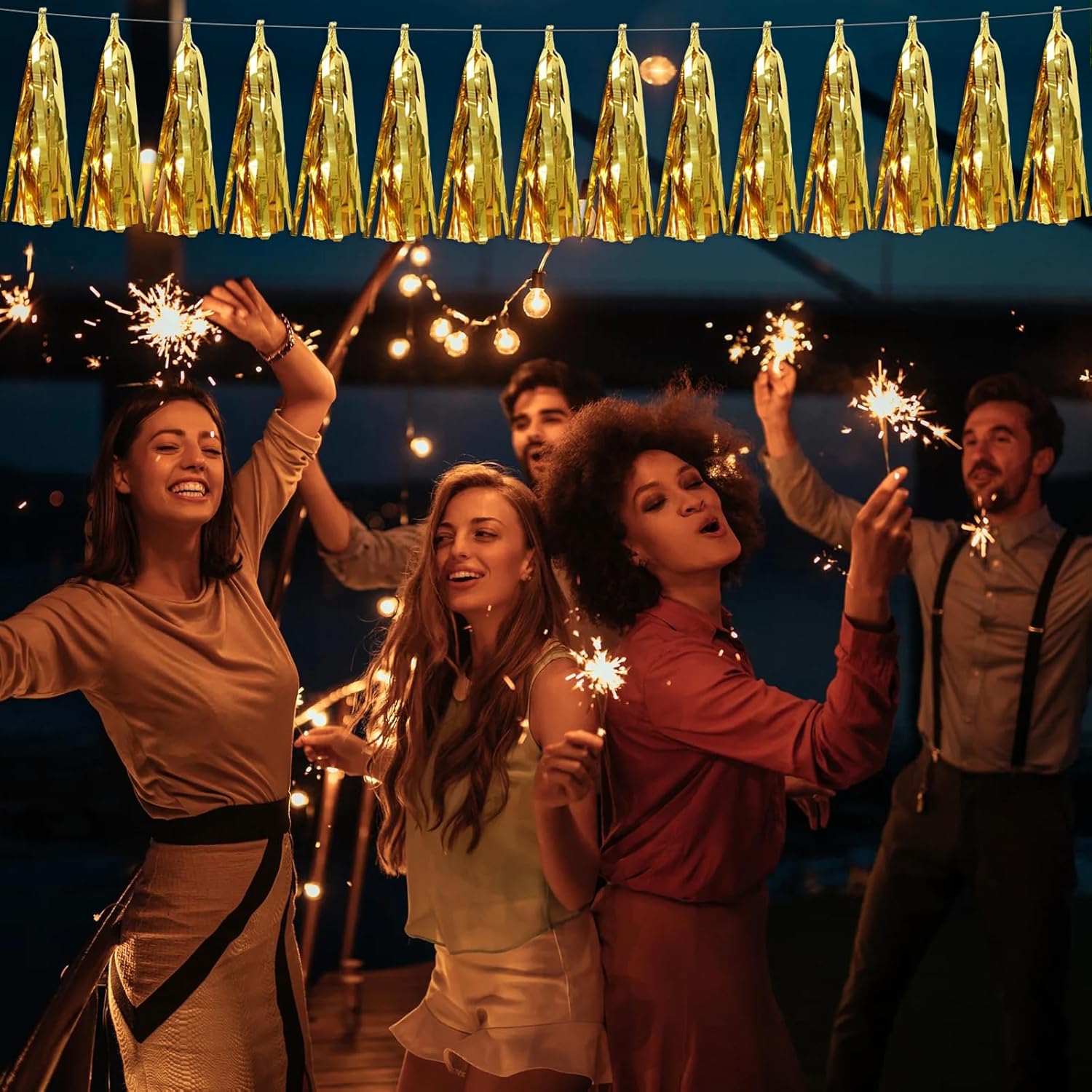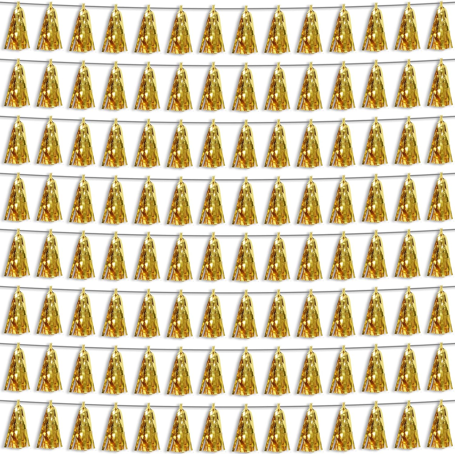 8P Gold Foil Fringe Metallic Tassel Streamers Banner Tassel Garland for Parade Floats, Bachelorette, Wedding, Birthday, Halloween, Christmas, Bridal/Baby Shower Party Decorations