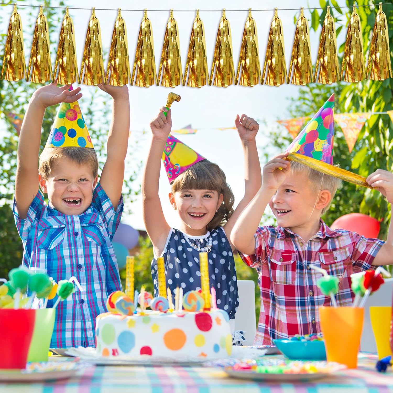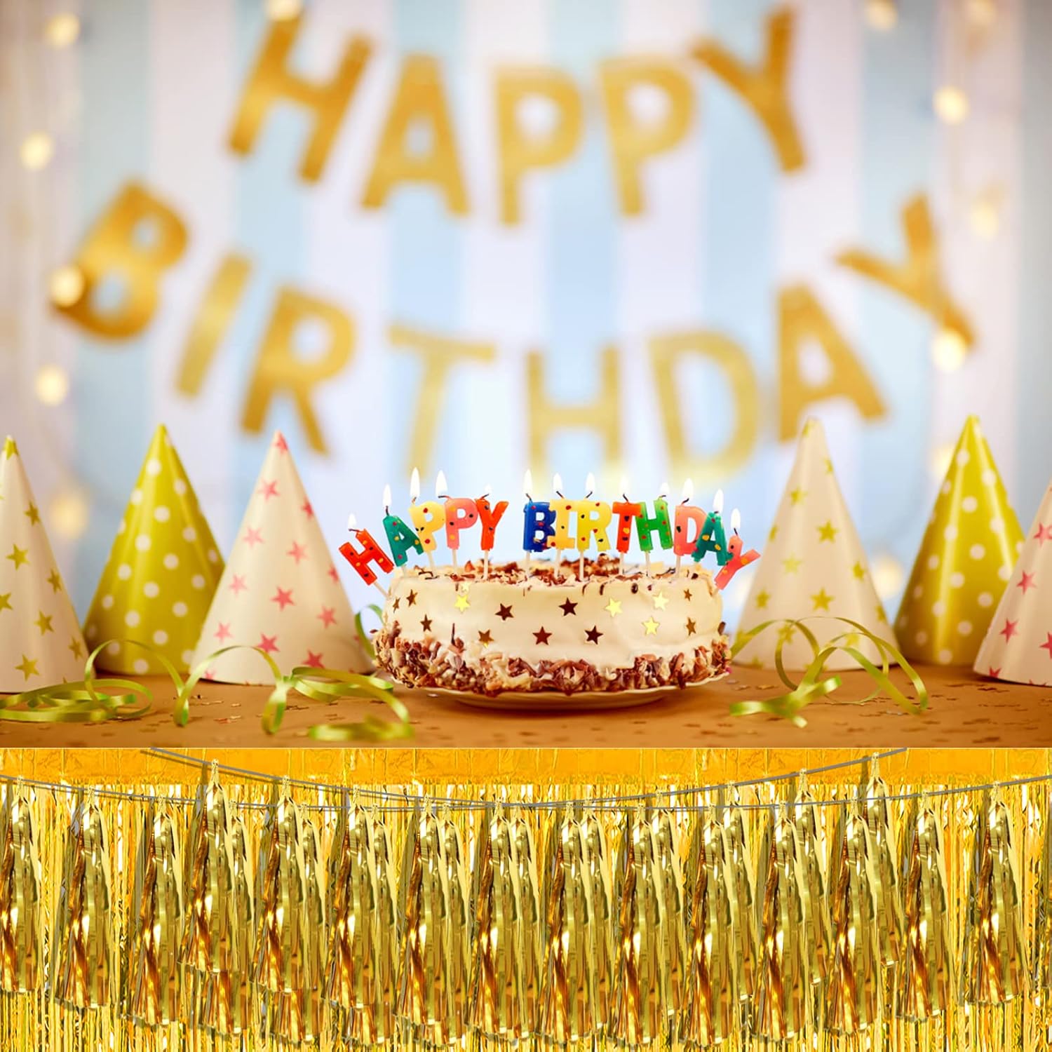 - 【Gold Party Supplies Set】: The total length of the gold birthday tassels banner is 78.7 feet 120tassels, divided into 8 strips, each 9.8 feet long. Each banner contains 15 tassels, and each tassel measures 14 inches, for birthday decorations many occasions, and so on