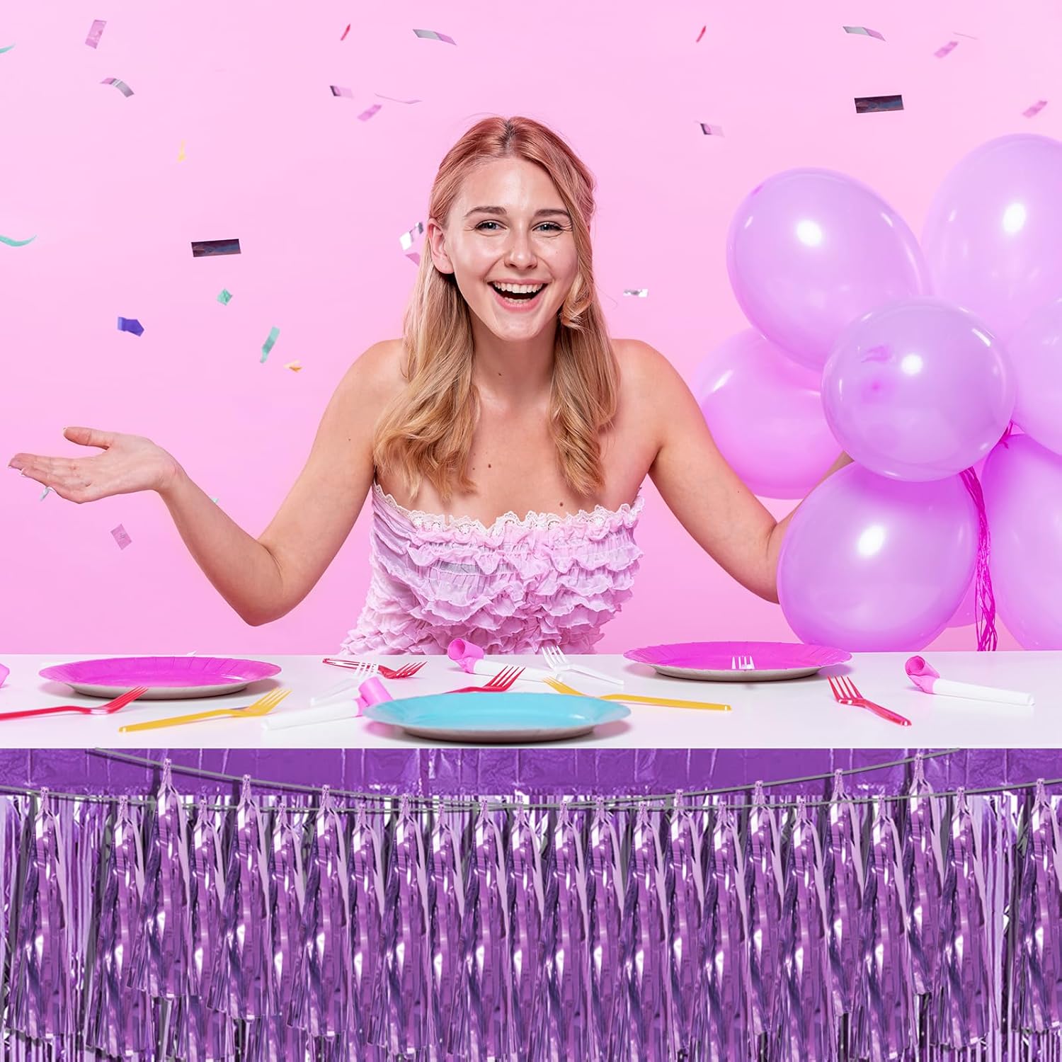 - 【Light Purple Party Supplies Set】: The total length of the light purple birthday tassels banner is 29.5 feet 45tassels, divided into 3 strips, each 9.8 feet long. Each banner contains 15 tassels, and each tassel measures 14 inches, for birthday decorations many occasions, and so on