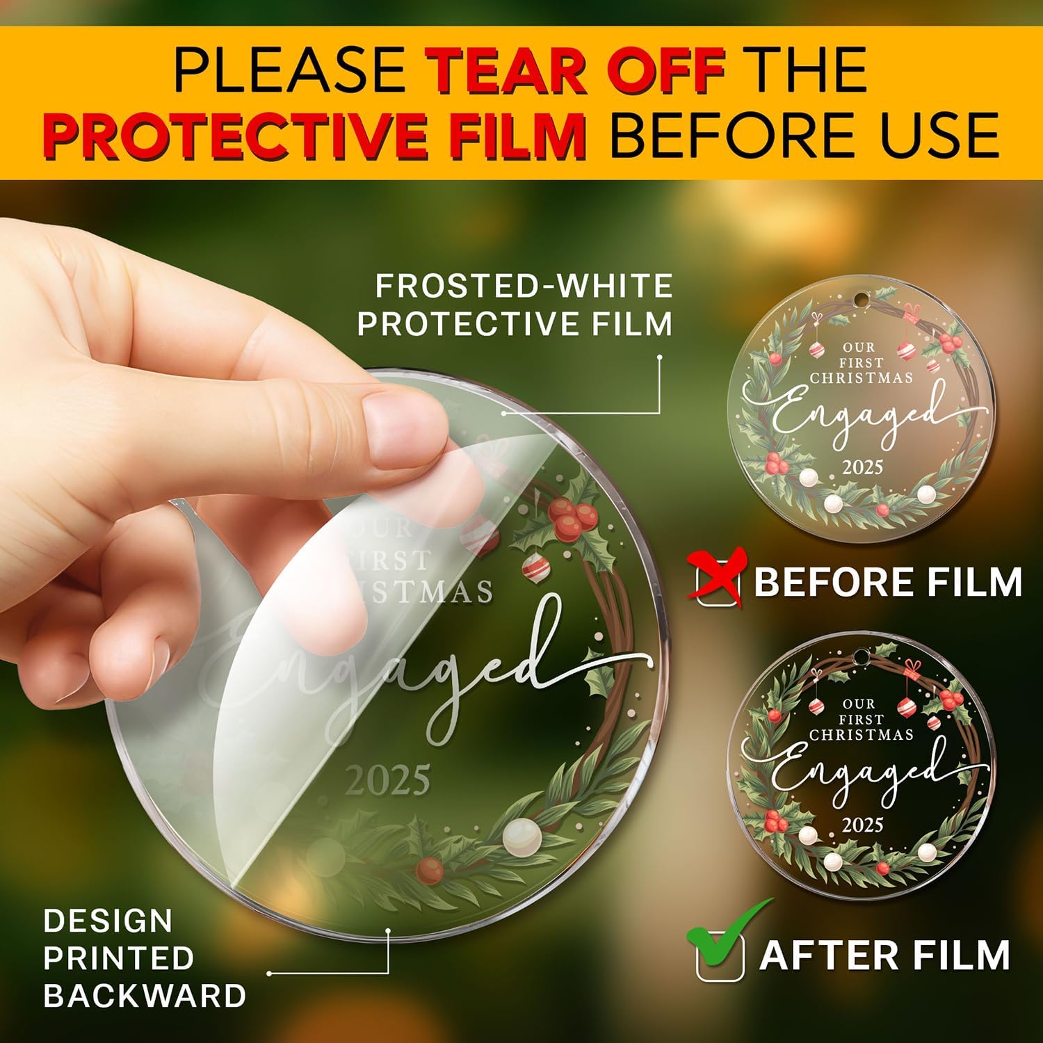 - FIRST CHRISTMAS ENGAGED ORNAMENT 2025: Let the world know this Christmas, You're Engaged! For your future mate, this Engaged Ornament 2025 will commemorate the important things in life & create lasting and loving memories. Suitable for engagement ornament 2025, engagement christmas ornament 2025, engagement presents for couples, engaged christmas ornament, engagement gifts for bride, engagement christmas gifts, happy engagement decorations
