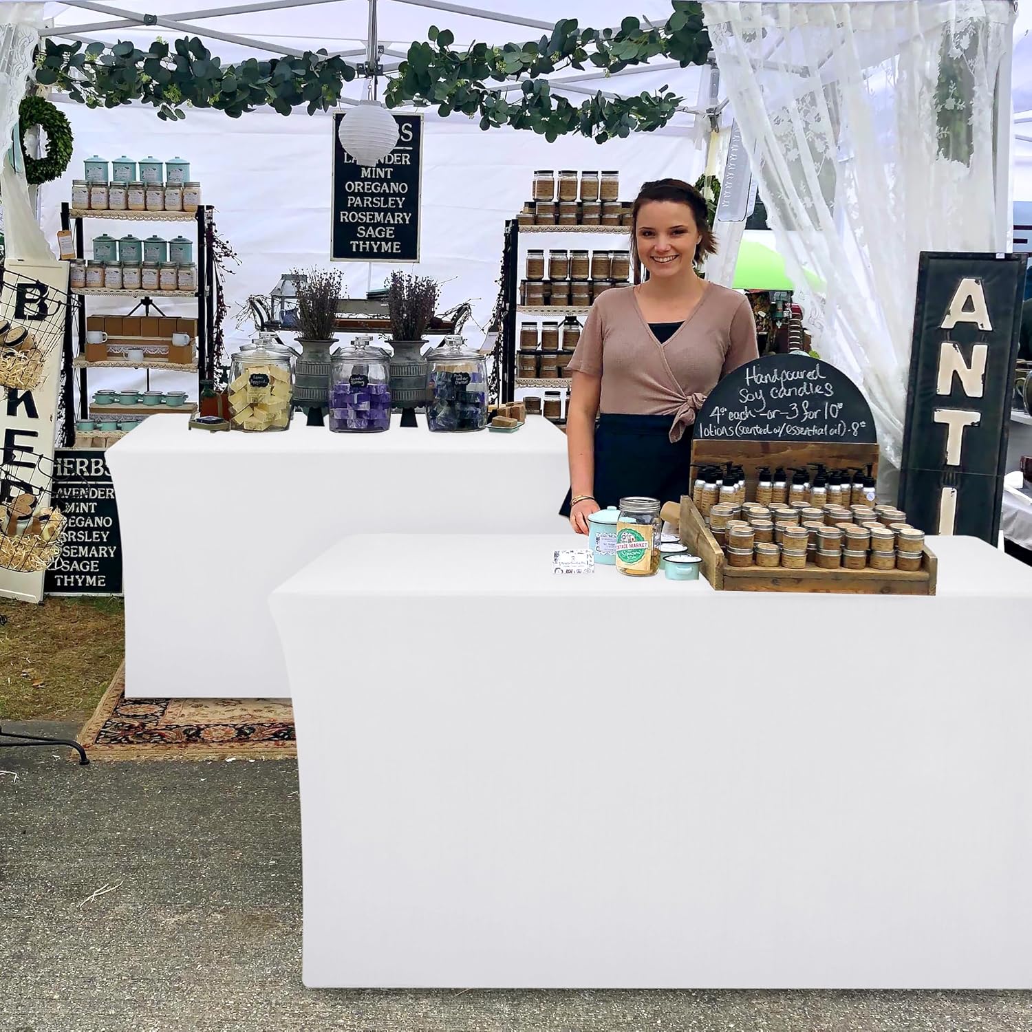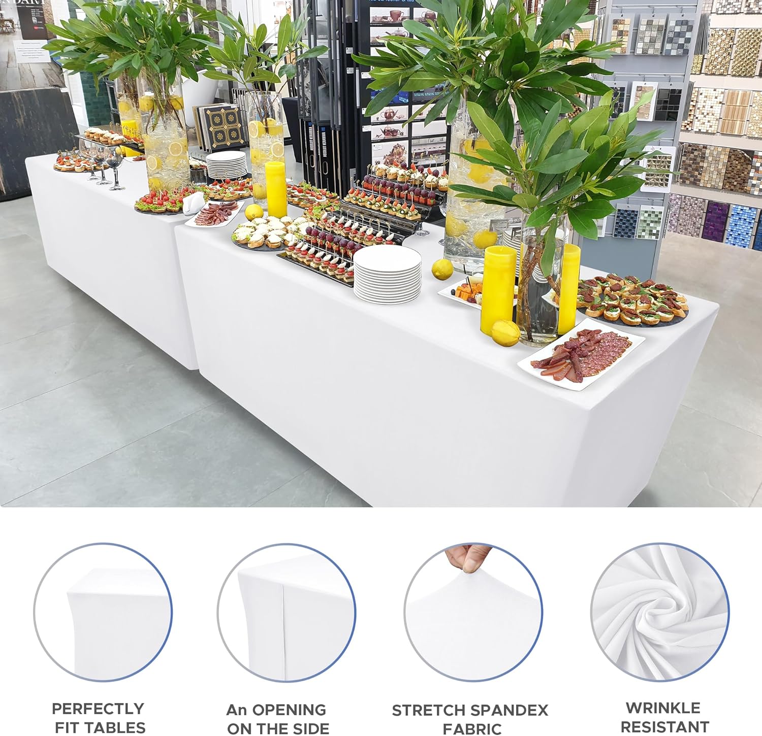 Nasitos White Fitted Table Covers for 5 Foot Tables - 60 x 30 Inch - 2 Pack Stretch Spandex Rectangle Table Clothes, Fabric Tablecloths for Parties, Trade Show, Craft Show, Birthday