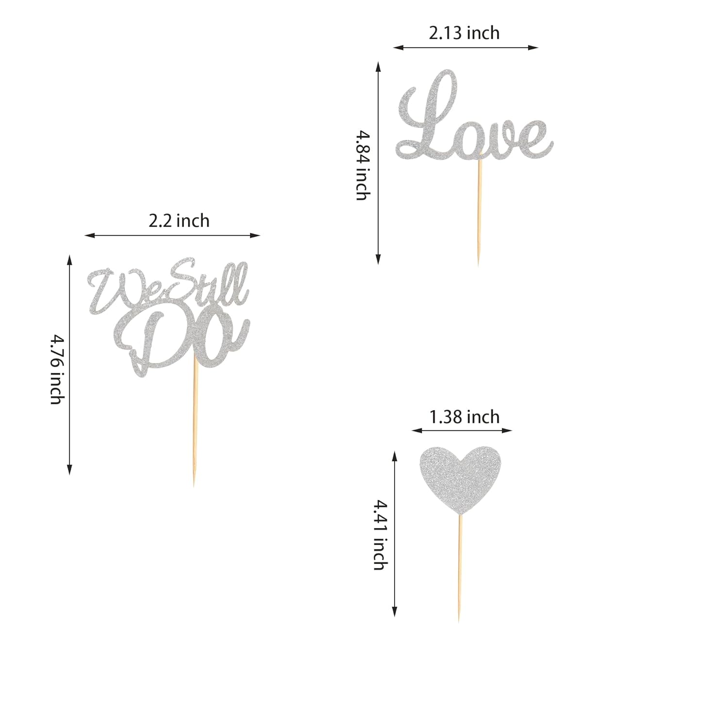 24Pcs We Still Do Cupcake Toppers Glitter Love Heart Marriage Anniversary Cupcake Picks Bridal Shower Wedding Engagement Birthday Cake Decorations Supplies - Silver Glitter