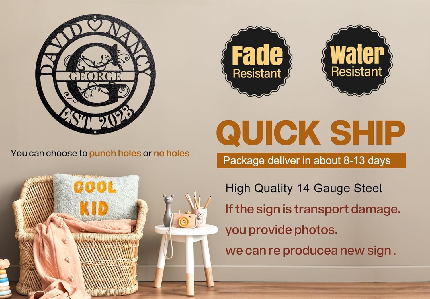 - QUALITY METAL ART: Our decorative metal characters is cut from heavy-duty 14-gauge steel (0.08 inches thick).heavy-duty 14-gauge steel will not be as thin as 16 steel and 18 steel.These name signs will not flex nor break like products made of inferior materials.Your personalized metal sign used powder coated to give a smooth finish and long term durability. This piece will look impressive any where in your home, inside our out and would make the perfect gift for anniversaries, weddings, housewa