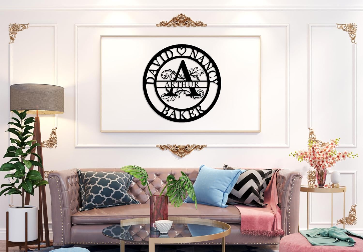 - SPLIT LETTER MONOGRAM DESIGN: Infuse a personal touch to your walls with our split letter monogram design that elegantly integrates your last name initial.