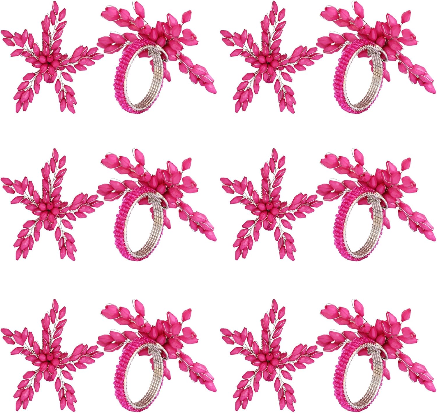 Napkin Rings Set of 12 for Dining Table Decoration Parties Everyday Metal Napkin Holder Leaf Pink (Pack of 12)