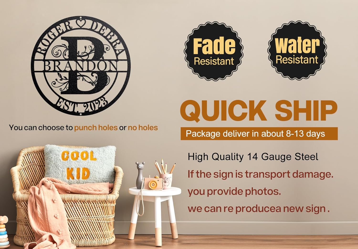 - Custom Name Signs with Metal Art: Every metal name sign we create is unique, custom made just for you. Crafted with high-quality metal, each piece portrays an impeccable blend of elegance and durability,Our custom sign outdoor metal doesn't just stand out in style, but also in substance.Our decorative metal characters is cut from heavy-duty 14-gauge steel (0.08 inches thick). heavy-duty 14-gauge steel will not be as thin as 16 steel and 18 steel. the metal name signs are lightweight and are les