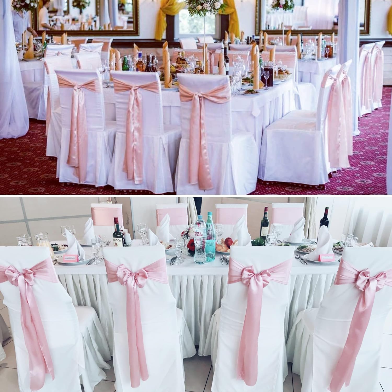 - 【Quantity and Size】50 pcs chair decorative satin sashes bow, designed for wedding events banquet home kitchen decoration, enough quantity which will meet your wedding banquets and daily use. 50 pcs satin chair sashes bows decorative are perfect for universal chair cover. The size of the satin chair sashes ties is approx.7 x 108 inch/ 17 x 275 cm, long enough for you to tie a good size chair bow, makes the satin ties a perfect choice for all wedding and party chairs. only include chair sashes.