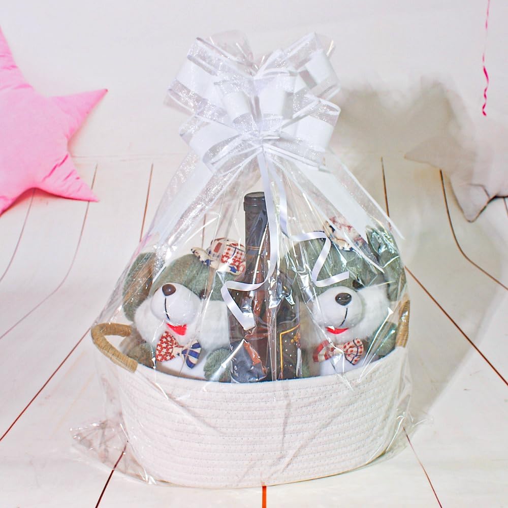 - High Quality: Our pull bows are made of organza and high quality pearlized glitter material. It will shining under the light and look elegant and glamorous. Use this large bow as the finishing touch to your gift wrapping and make your gift truly stand out!