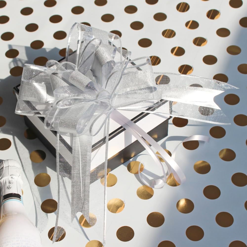 - High Quality: Our bows for gift wrapping are made of organza and high quality pearlized glitter material. It will shining under the light and look elegant and glamorous. These elegant sliver bows are sure to make your gifts stand out at every gift-giving occasion!