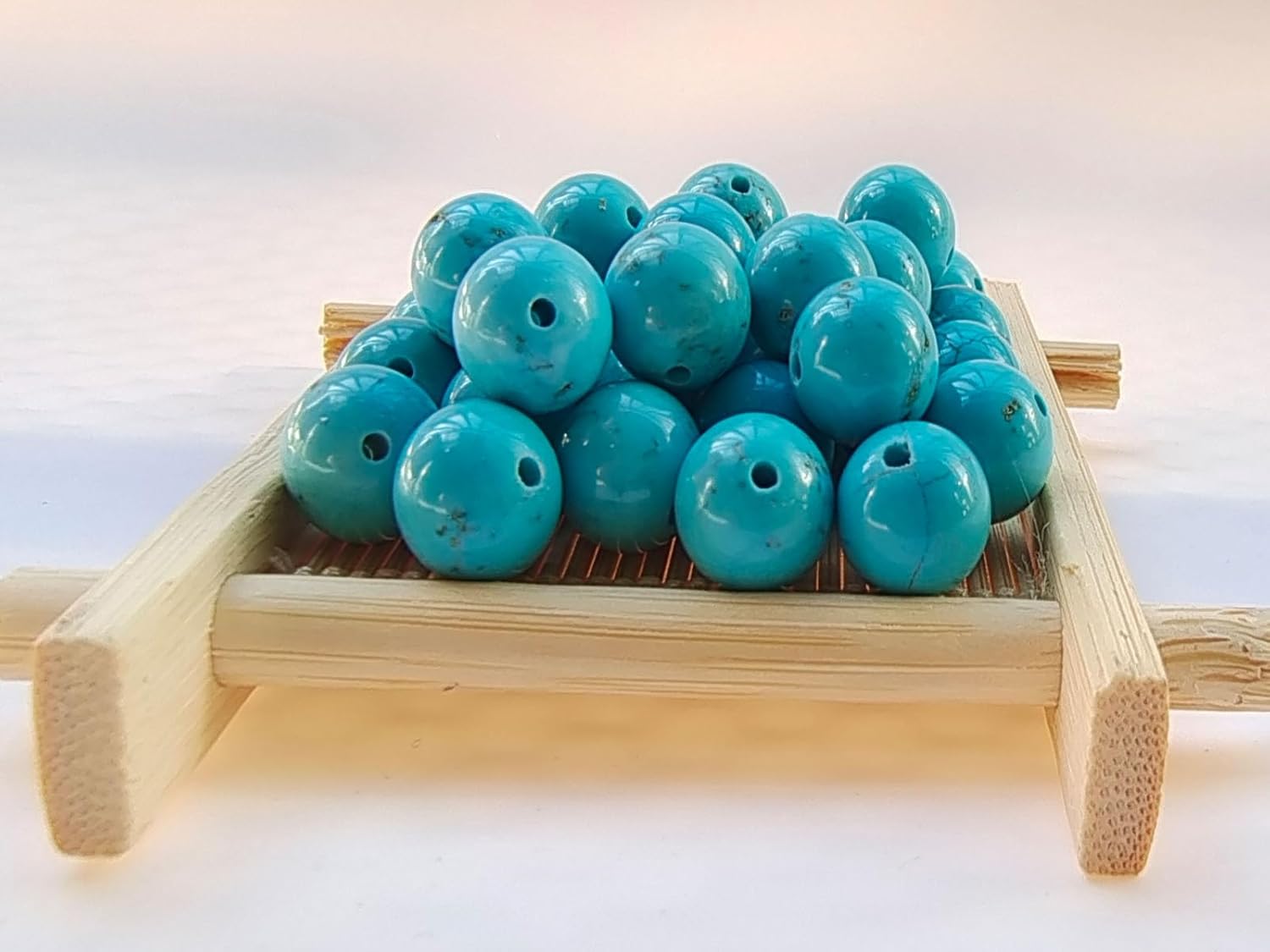 Stone Beads 10mm 60pcs Blue Turquoise Beads Round Loose Gemstones Beads for Bracelet Necklace Jewelry Making (10mm, 61025 Blue Turquoise)