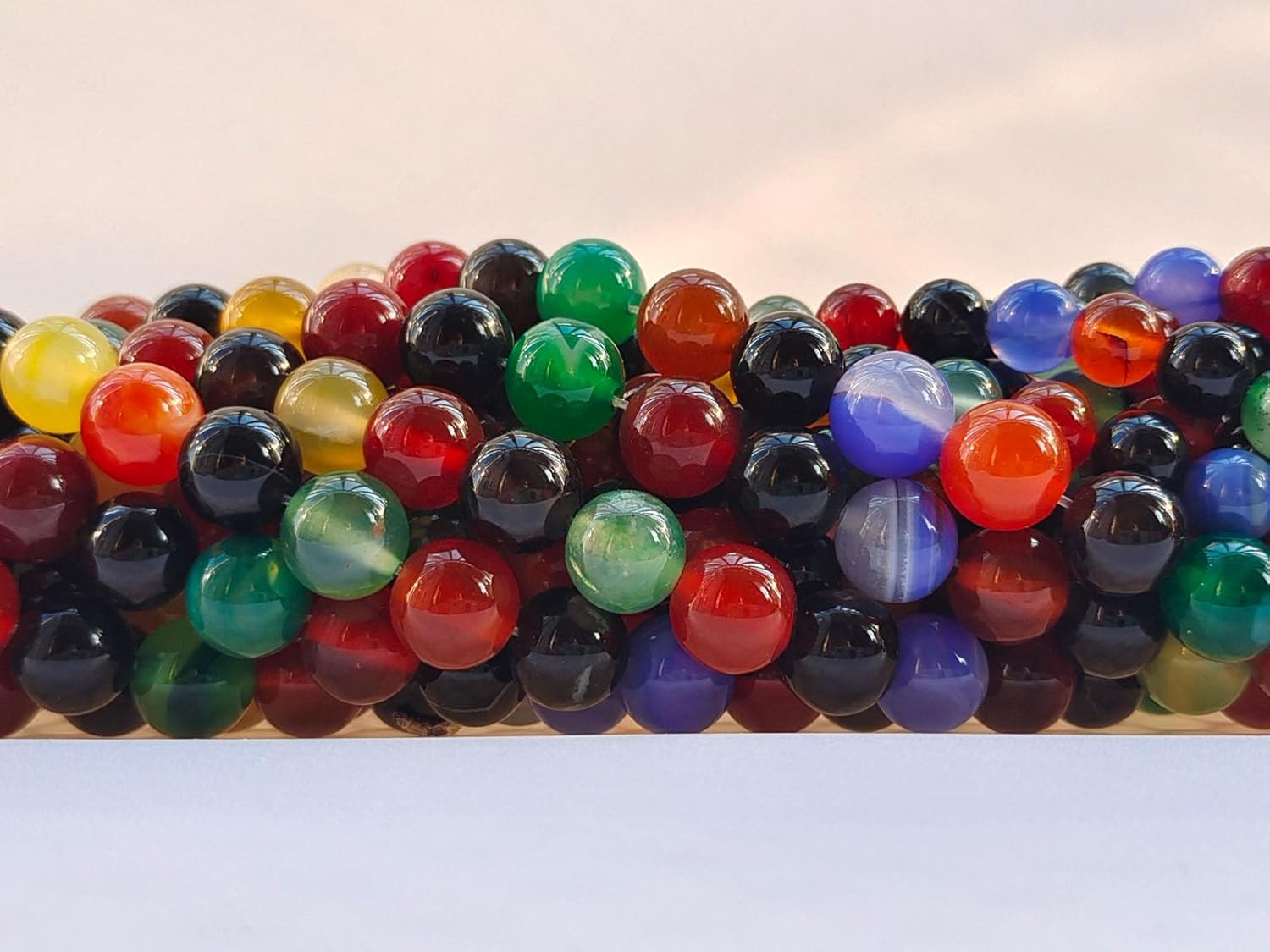 Stone Beads 10mm 60pcs Colorful Agate Beads Round Loose Gemstones Beads for Bracelet Necklace Jewelry Making (10mm, 61011 Colorful Agate)
