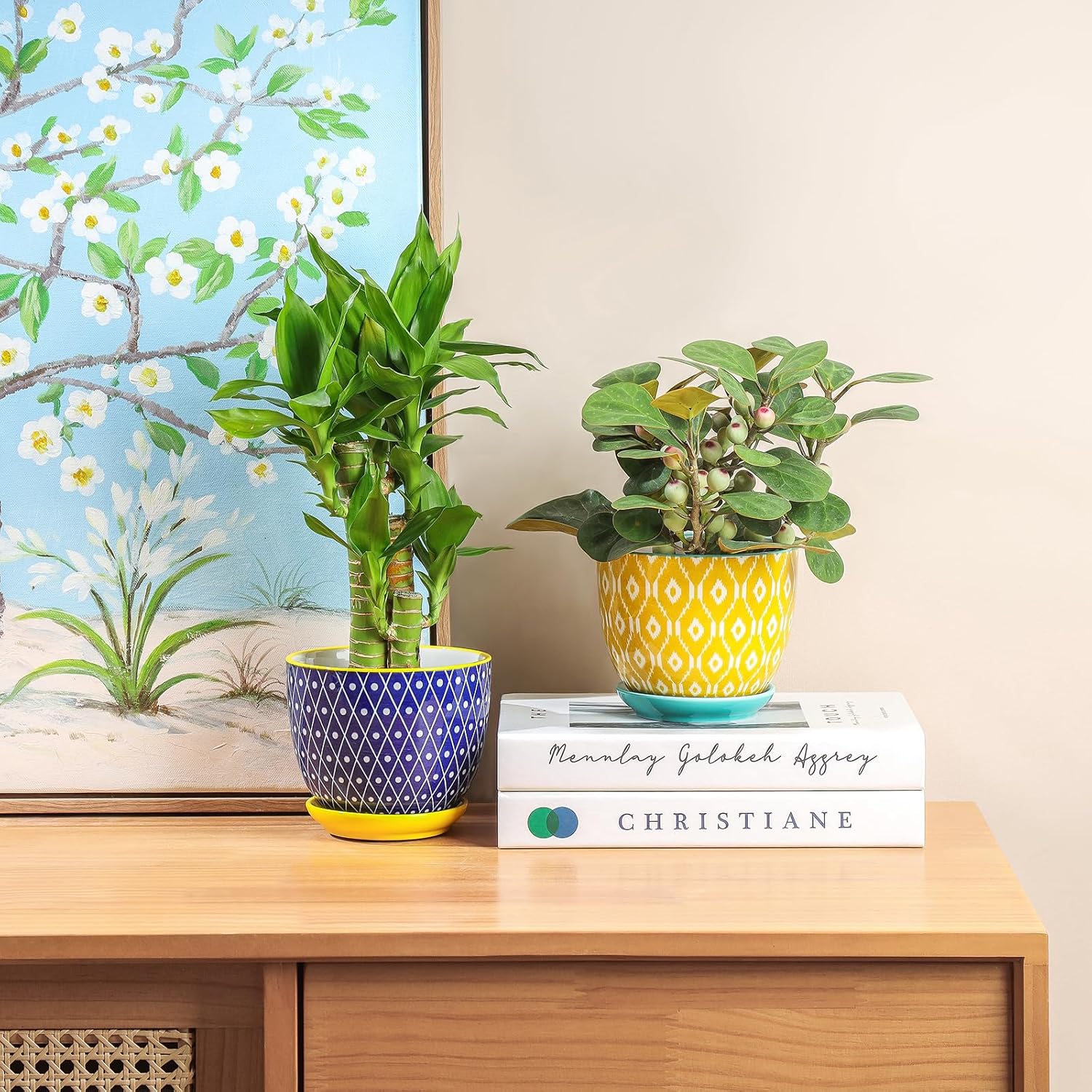 Selamica Ceramic Plant Pots, 4.6 Inch Flower Pots for Indoor Plants, Succulent Pots with Drainage Hole & Saucer, Succulent Planters for Succulent Cactus, Home Decor, Set of 4, Assorted Colors
