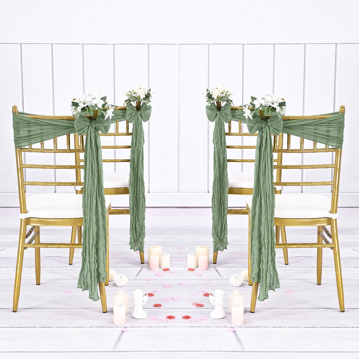 36 Pcs Sage Green Cheesecloth Chair Sashes, 16 x 108 inch Gauze Fabric Washable Chair Sashes Bows Designed for Aisle Decorations Universal Chair Cover Decor for Wedding Reception Party Banquet