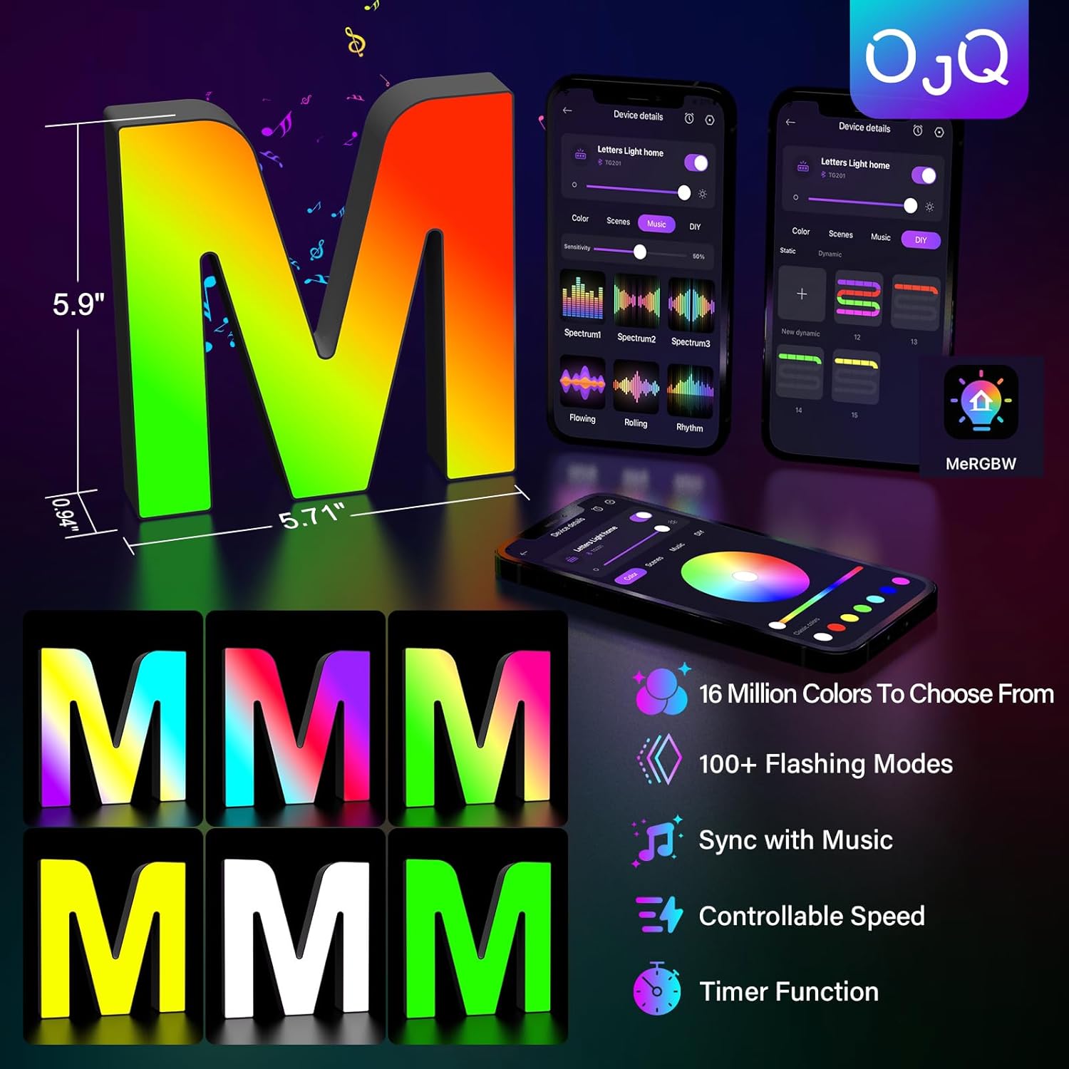 - Smart APP and DIY: LED letter lights can be freely controlled by remote control or smart APP, with hundreds of different colors and rhythm light effects. The LED lights are colorful, durable and adjustable in brightness, you can also DIY your own unique colors and combinations to suit the ambience of the room