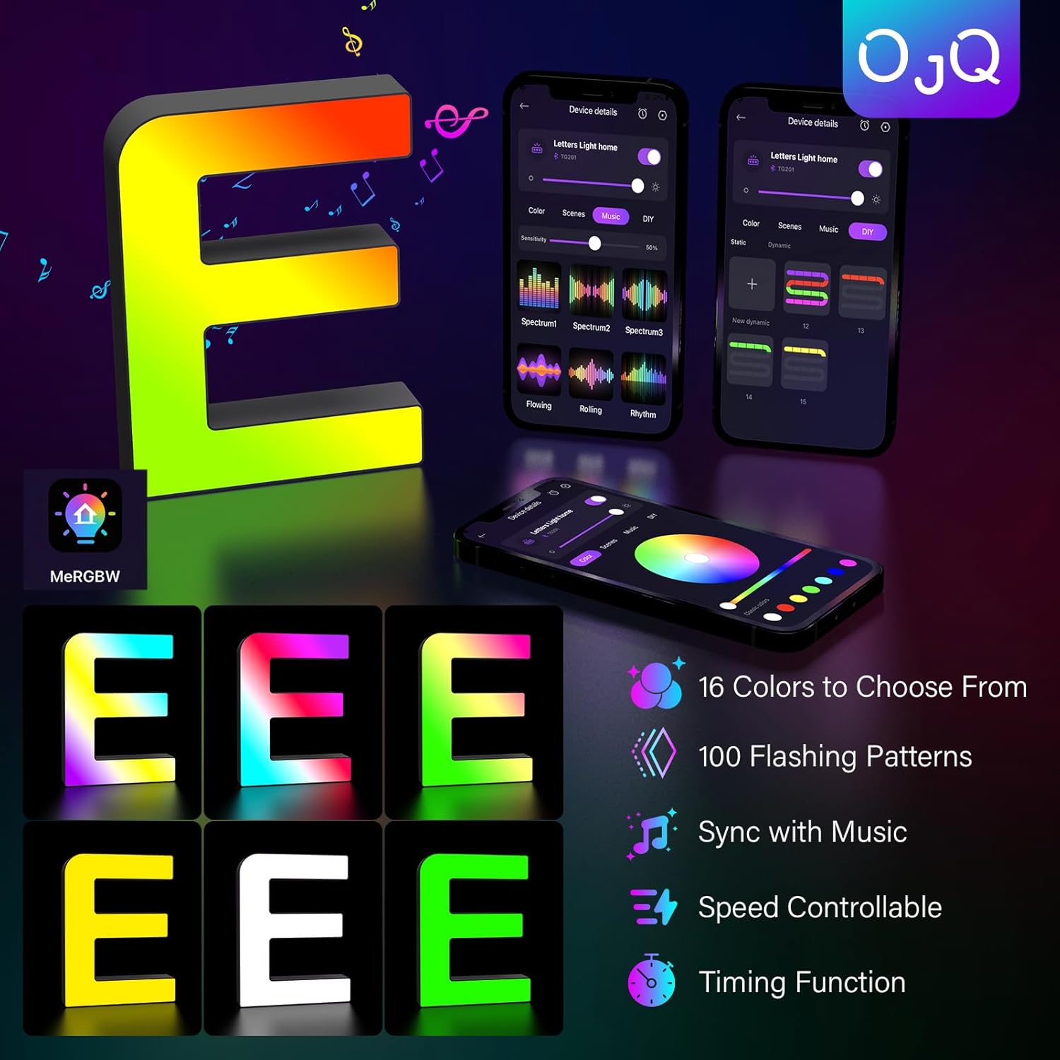 OJQ Light Up Letters LED Letter - Marquee Letters Room Decor Alphabet Letter Music Sync Color Change Colorful - Christmas Birthday Gifts for Girl - Teen Girls Gifts Party Home Wall Decor