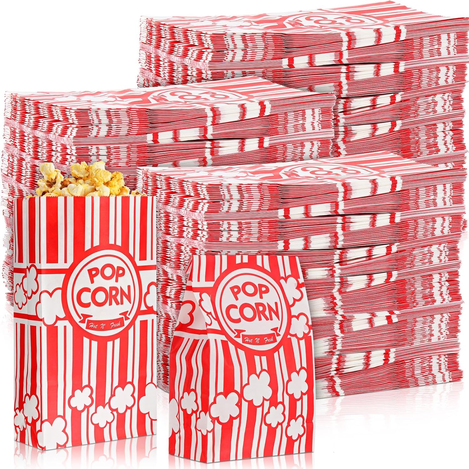 - Thoughtful Wide Mouth Design: designed with a rectangular mouth, the popcorn paper bags are large enough for you to reach for the popcorn; What's more, you can easily fold the mouths of the bags to seal the popcorn inside, to avoid spilling out, also, you can set the bags on the table instead of keeping holding them in the hand