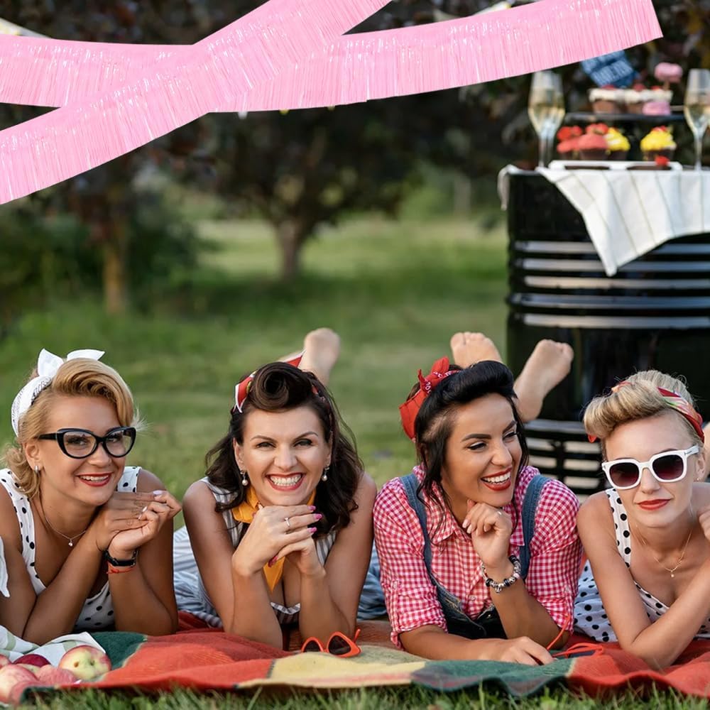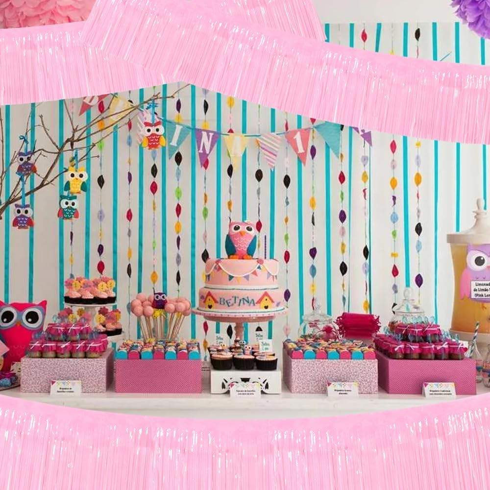 - 【Package includes】:3 Packs Pink shiny fringed tassel banner, each tassel garland is about 10 feet long, enough to decorate your party.