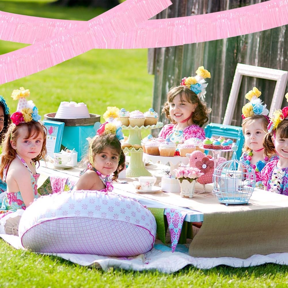 BEISHIDA 3 Packs Metallic Foil Fringe Garland Macaron Pink Wall Hanging Tinsel Fringe Banners for Car Floats Bridal Shower Wedding Birthday Easter Graduation Holiday Party Decoration(30 Feet)