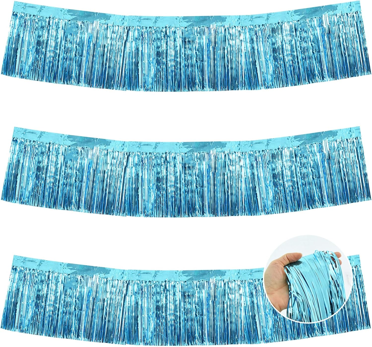 - 【Package includes】:3 Packs Baby Blue shiny fringed tassel banner, each tassel garland is about 10 feet long, enough to decorate your party.