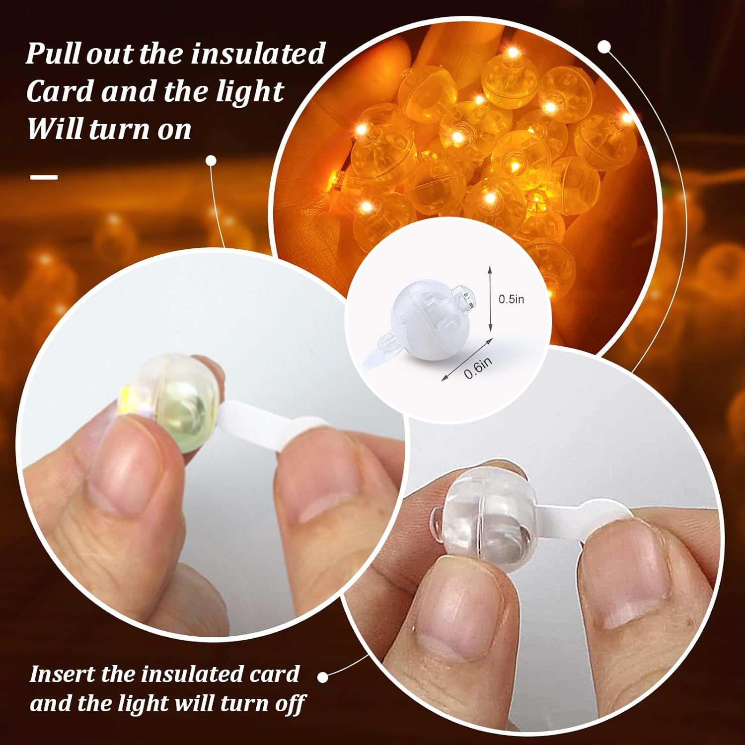 50pcs LED Orange Balloon Light Mini Tiny LED Light, Small Round Led Ball Lamp for Paper Lantern Indoor Outdoor Fun Birthday Event Halloween Christmas Party Wedding Decoration Supplies