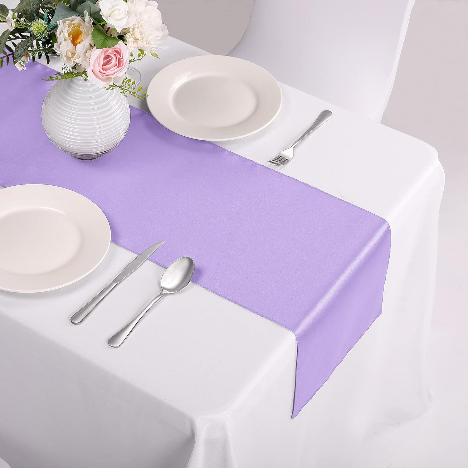 15-Pack Satin Table Runner Lavender 12 x 108 inches Long, Table Runners for Wedding, Birthday Parties, Banquets Decorations(15 Pack, 12x108 Inch, Lavender)