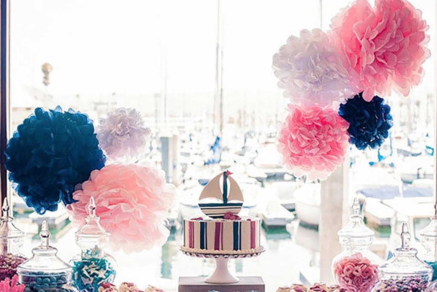 - PAPER FLOWER POM POMS Used in lieu of balloons, for they are more lightweight. They can be scattered as dessert table decor, or placed in vases as unique centerpieces. You can create a wonderful backdrop for your family or friends with it