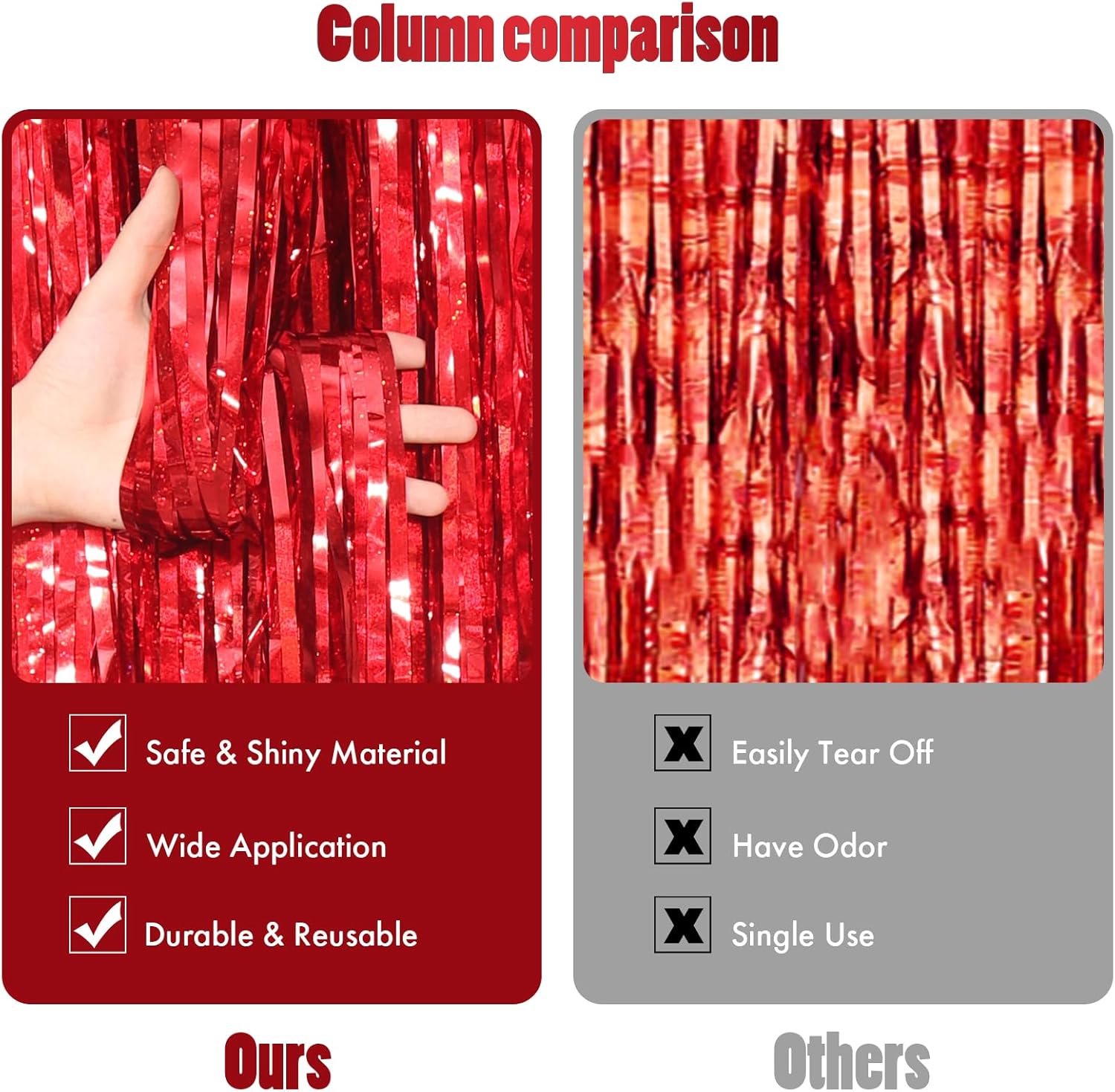 - 🎉SAFE & SHINY MATERIAL- This red tinsel backdrop is made of high-quality shiny tinsel, non-toxic, odorless, and non-fading, safe for families with children and pets. Just transform your home into a shining streamers happy birthday decorations, and enjoy the party.
